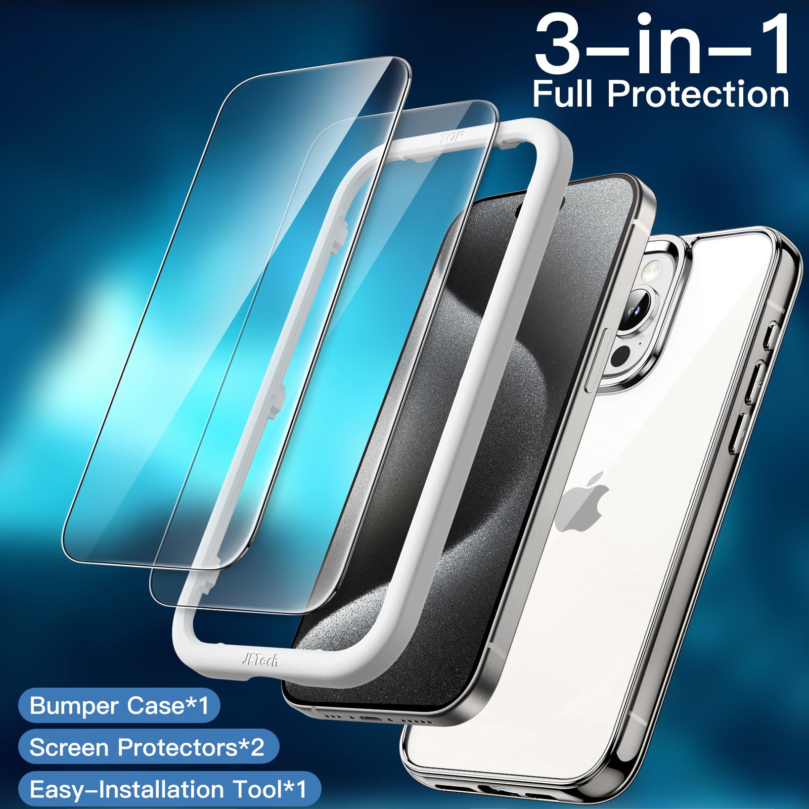 [3-in-1 High Protection] Exclusively fit iPhone 15 Pro Max 6.7-inch. You will receive a protective clear case and 2 pack screen protectors with an alignment tool, bringing comprehensive protection to your device