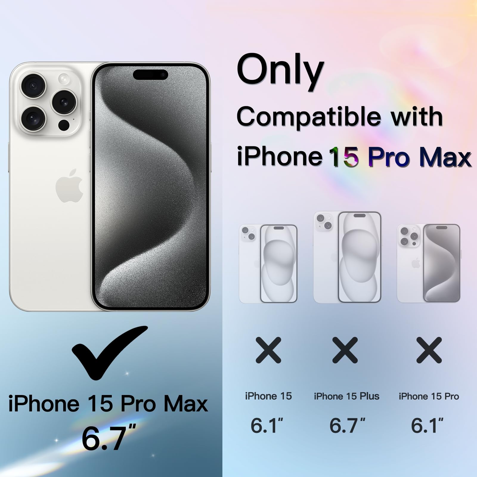 [Perfectly Fit] Designed for iPhone 15 Pro Max 6.7 inch for women and girls. The perfectly aligned cutouts allow full access to the camera, speaker, buttons and other ports