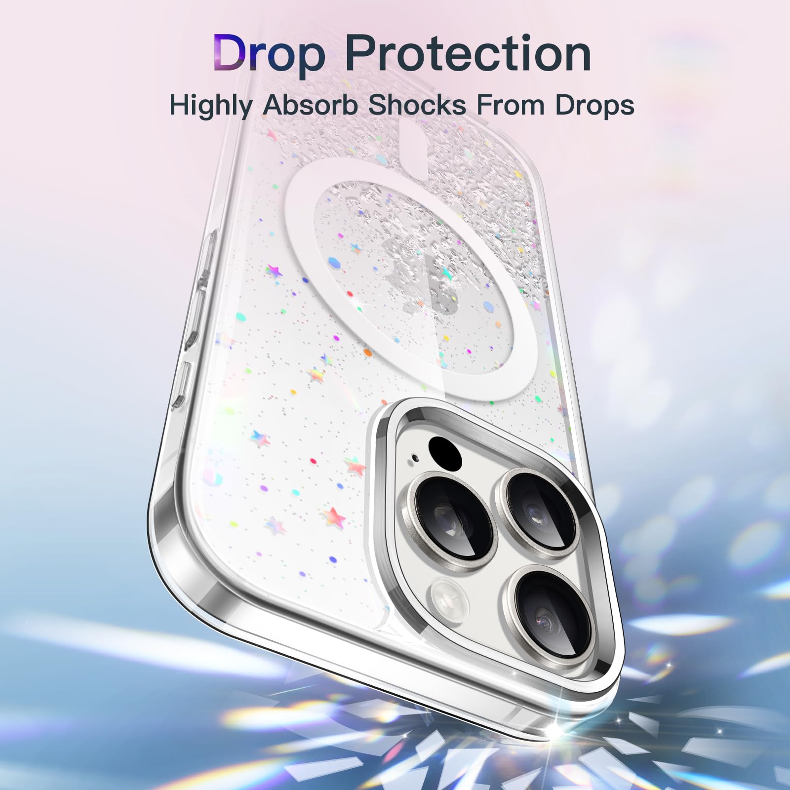 [Long Lasting Glitter] The embedded eye-catching silver foil will never flake off and stay bling. The flat and comfortable back shiny design can show special twinkle effects from different angles, making your phone more attractive and trendy