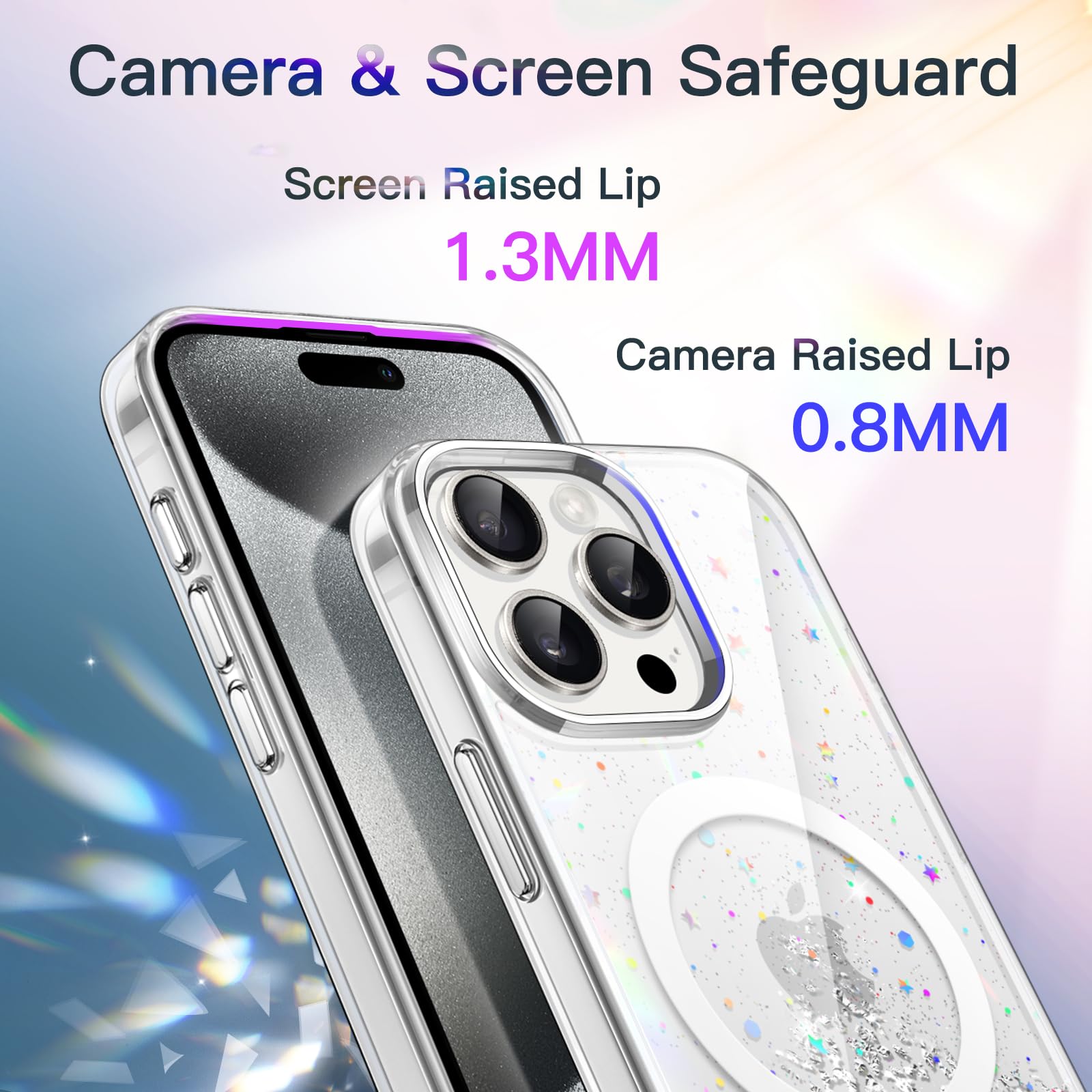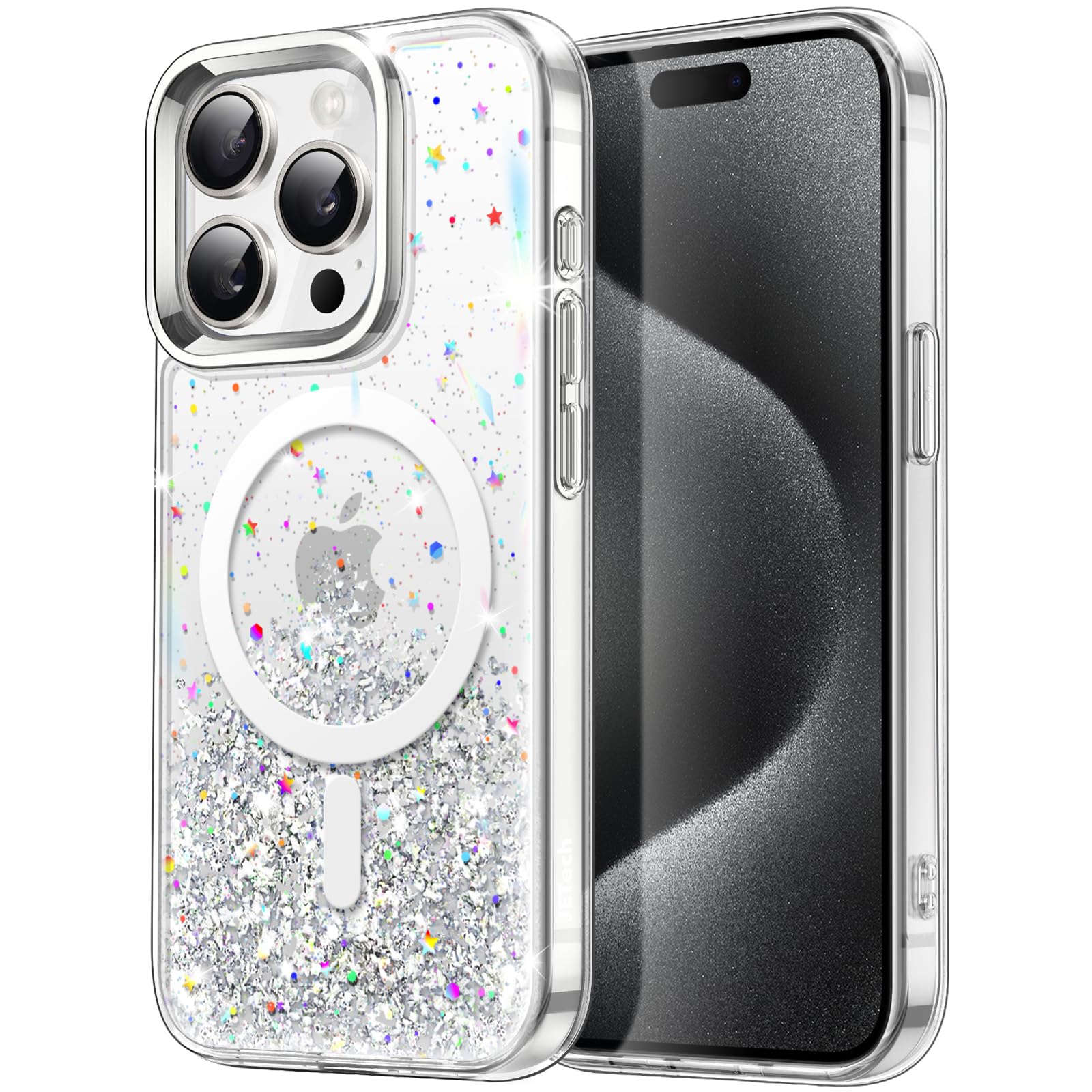 JETech Glitter Case for iPhone 15 Pro Max 6.7-Inch Compatible with MagSafe, Clear Cute Bling Sparkle for Women and Girls, Shiny Shockproof Magnetic Sparkly Phone Cover
