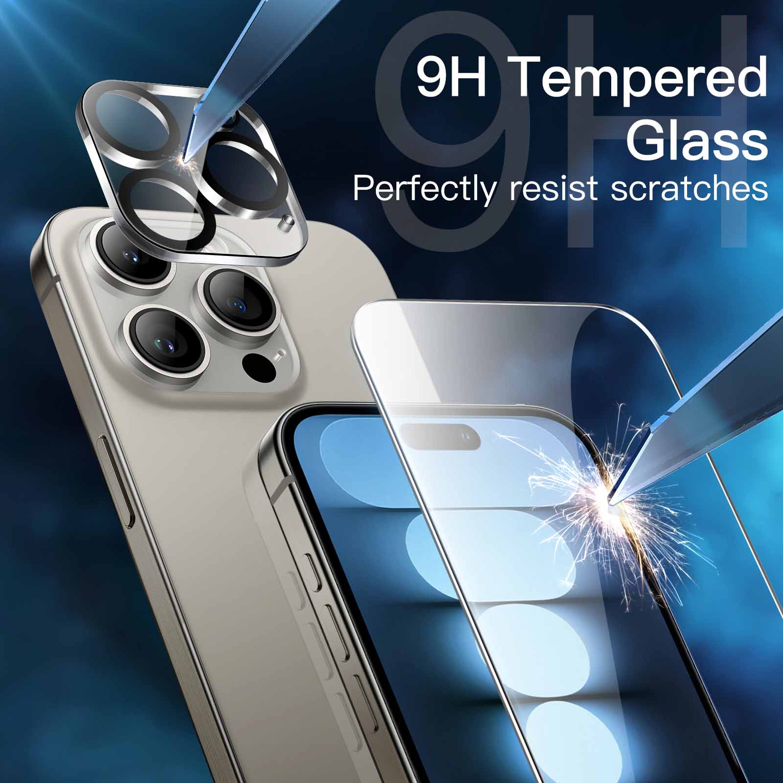 JETech Screen Protector for iPhone 15 Pro Max 6.7-Inch with Camera Lens Protector, Bubble Free, Easy Installation Tool, Tempered Glass Film, HD Clear, 3-Pack Each