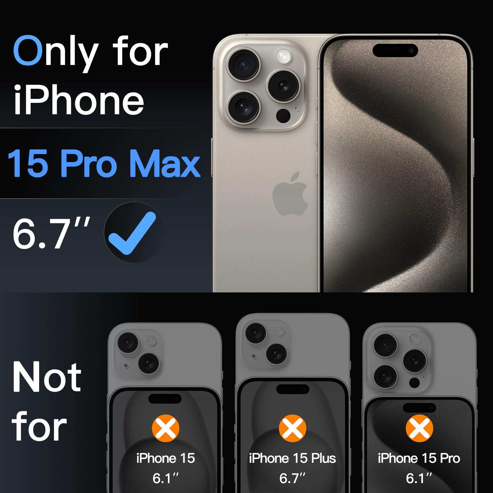 [Precise Fit] Designed for iPhone 15 Pro Max 6.7-inch for great protection. NOTE: Not for iPhone 15 / 15 Plus / 15 Pro. 2.5D curved edges design, compatible with most cases