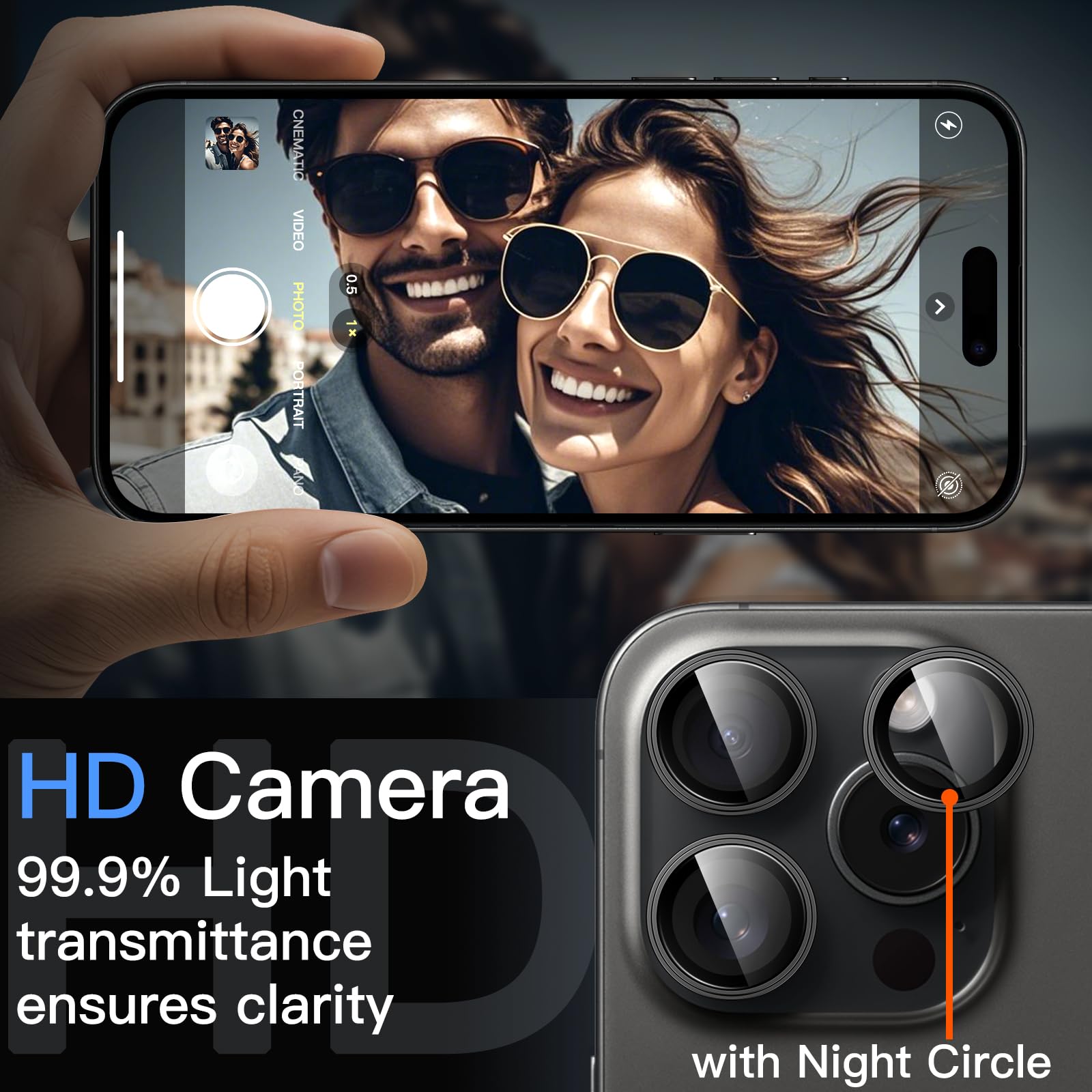[High Definition] The glass lens protector with 99.99% light transmittance ensures the original quality of photos and videos. Moreover, the oleophobic coating effectively keeps fingerprints, sweat and oil from gathering