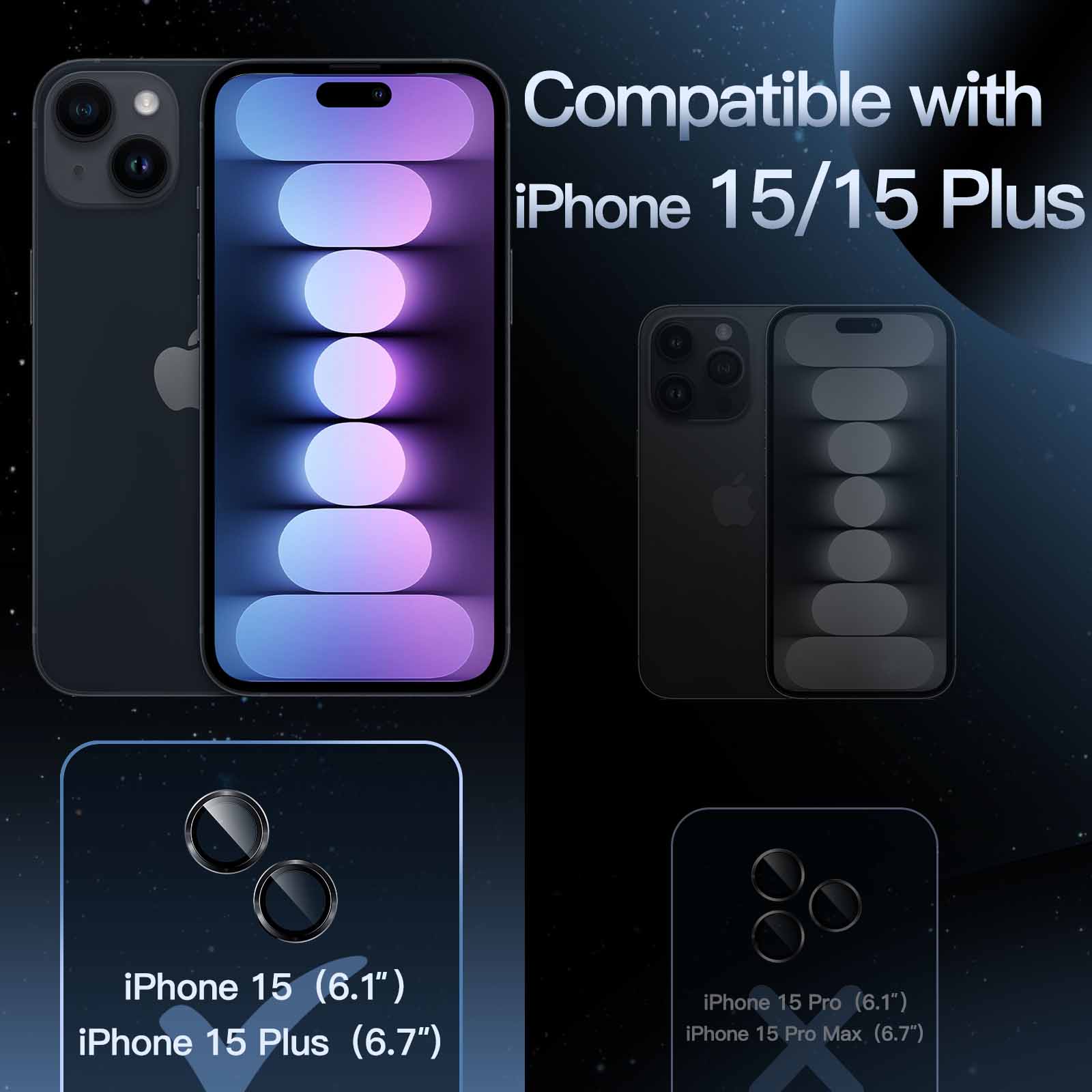 [Compatibility] Precisely fit iPhone 15 6.1-Inch and iPhone 15 Plus 6.7-Inch. Seamlessly cover the camera lens and prevent dust and water. Compatible with most phone cases