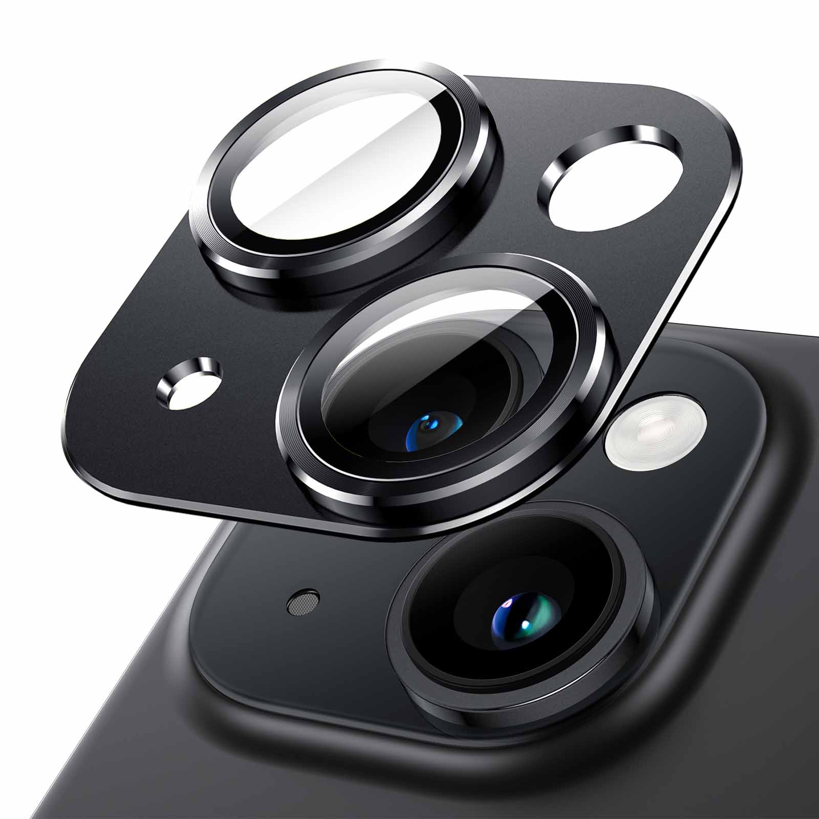 JETech Camera Lens Protector for iPhone 15 6.1-Inch and iPhone 15 Plus 6.7-Inch, Full Coverage 9H Tempered Glass Ring Cover, Matte Metal Plate, Case Friendly, 1-Pack