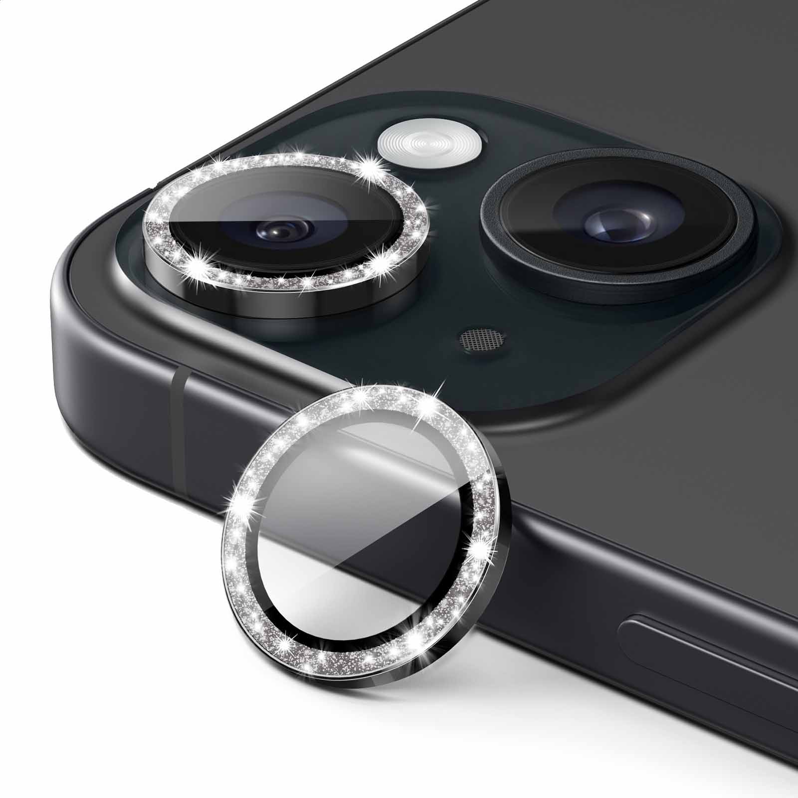 JETech Camera Lens Protector for iPhone 15 6.1-Inch and iPhone 15 Plus 6.7-Inch, Bling Glitter Individual 9H Tempered Glass Metal Ring Cover, HD Clear, 2-Pack