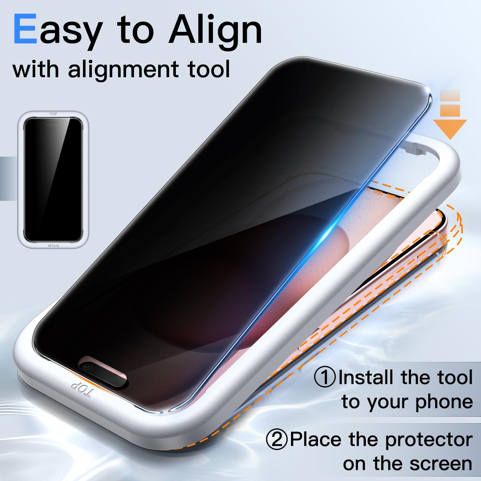 JETech 360 Degree Privacy Screen Protector for iPhone 15 6.1-Inch, 4-Way Anti-Spy Tempered Glass Film with Easy Installation Tool, 2-Pack