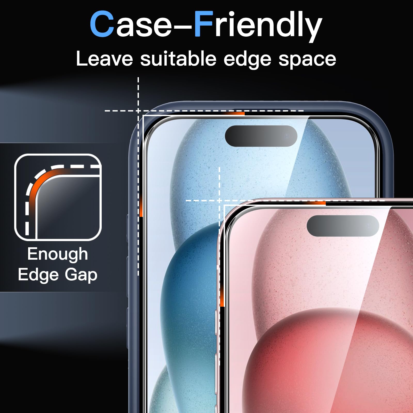 [Precise Fit] Designed for iPhone 15 6.1-inch for great protection. NOTE: Not for iPhone 15 Plus / 15 Pro / 15 Pro Max. 2.5D curved edges design, compatible with most cases
