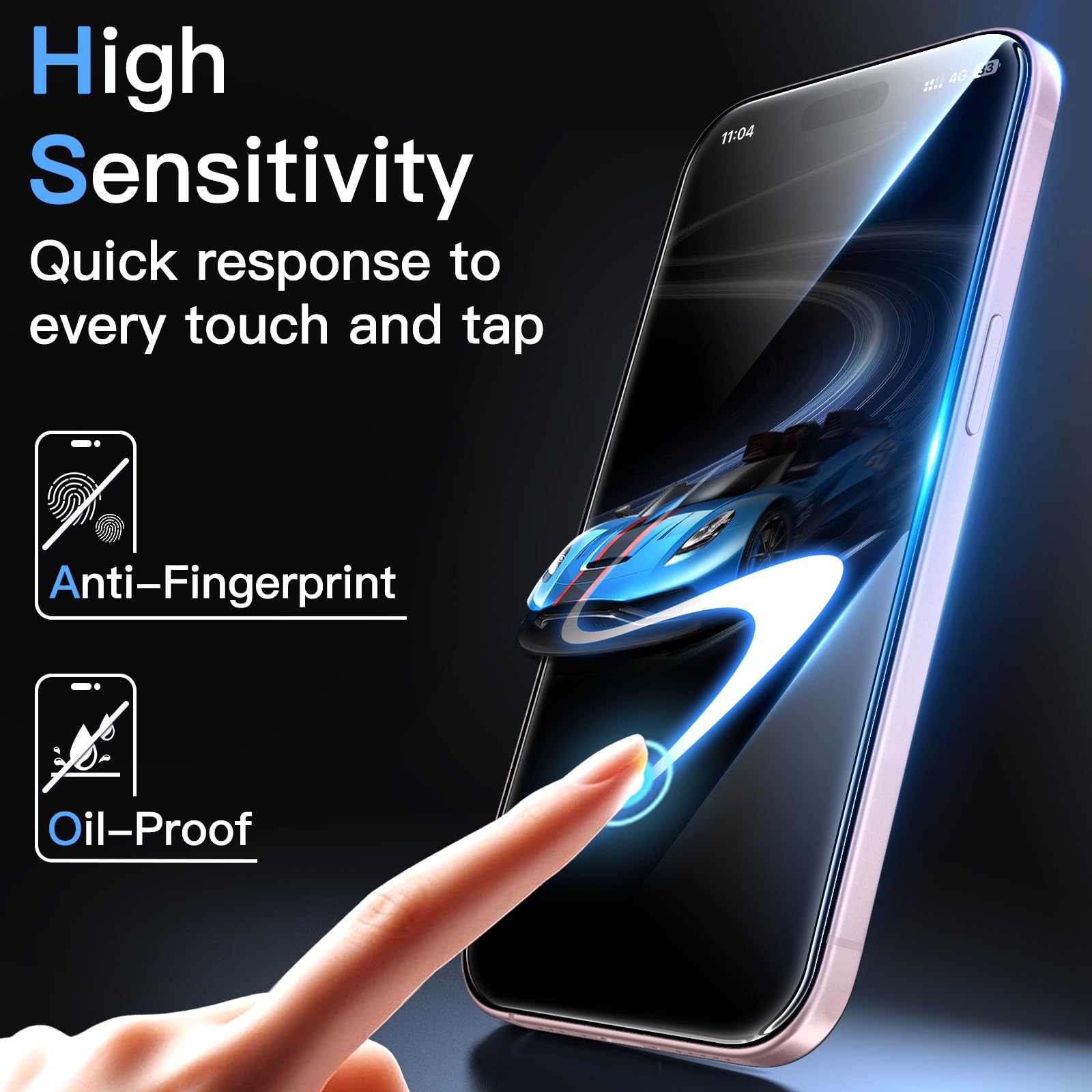 [Anti-Fingerprint & Oil-Proof] The hydrophobic and oleophobic coating prevents fingerprints, oil residue and sweat from gathering on the screen. Always maintain a clean screen environment for you