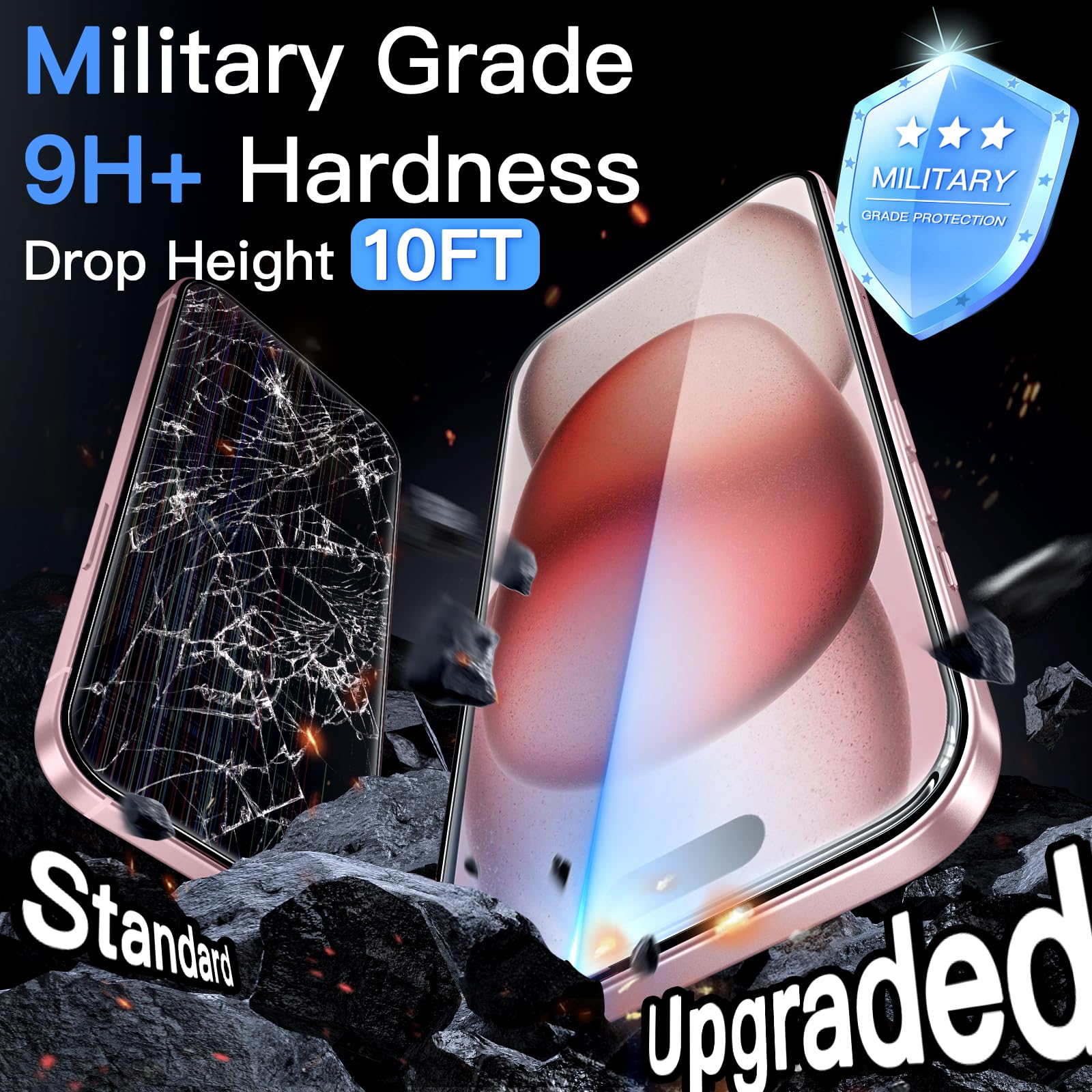 [Military Grade Drop Protection] 9H reinforced glass, more than twice as strong as standard protective film. The reinforced glass edge can effectively protect the edge of the protective film from being damaged or scratched. Military-grade protection, guarding your screen with all-round security