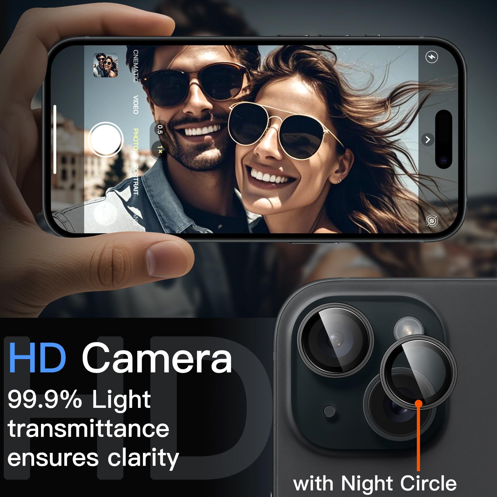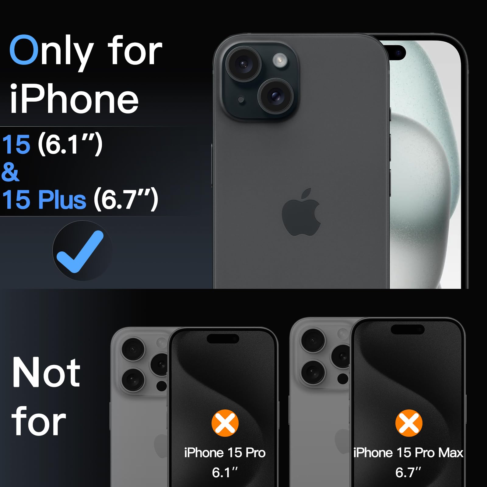 [Compatibility] Precisely fit for iPhone 15 6.1-inch and iPhone 15 Plus 6.7-inch. NOTE: Not for iPhone 15 Pro / 15 Pro Max. Seamlessly cover the camera lens and prevent dust and water. Compatible with most phone cases