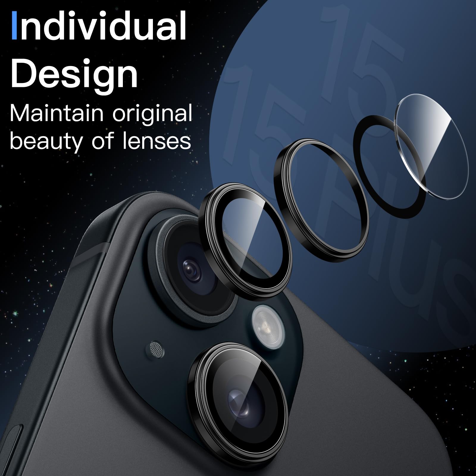 JETech Camera Lens Protector for iPhone 15 6.1-Inch and iPhone 15 Plus 6.7-Inch, 1:1 Invisible Fit, 9H Tempered Glass Metal Individual Ring Cover, Easy Installation Tray, HD Clear, 1 Set