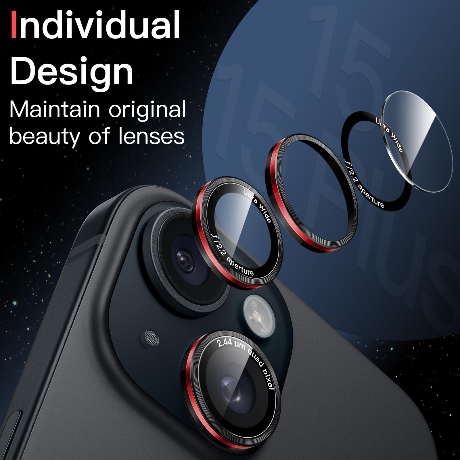 Be the first to review “JETech Camera Lens Protector for iPhone 15 6.1-Inch and iPhone 15 Plus 6.7-Inch, 9H Tempered Glass Metal Individual Ring Cover, Two-Tone, Easy Installation Tray, HD Clear, 1 Set (Black Red)”