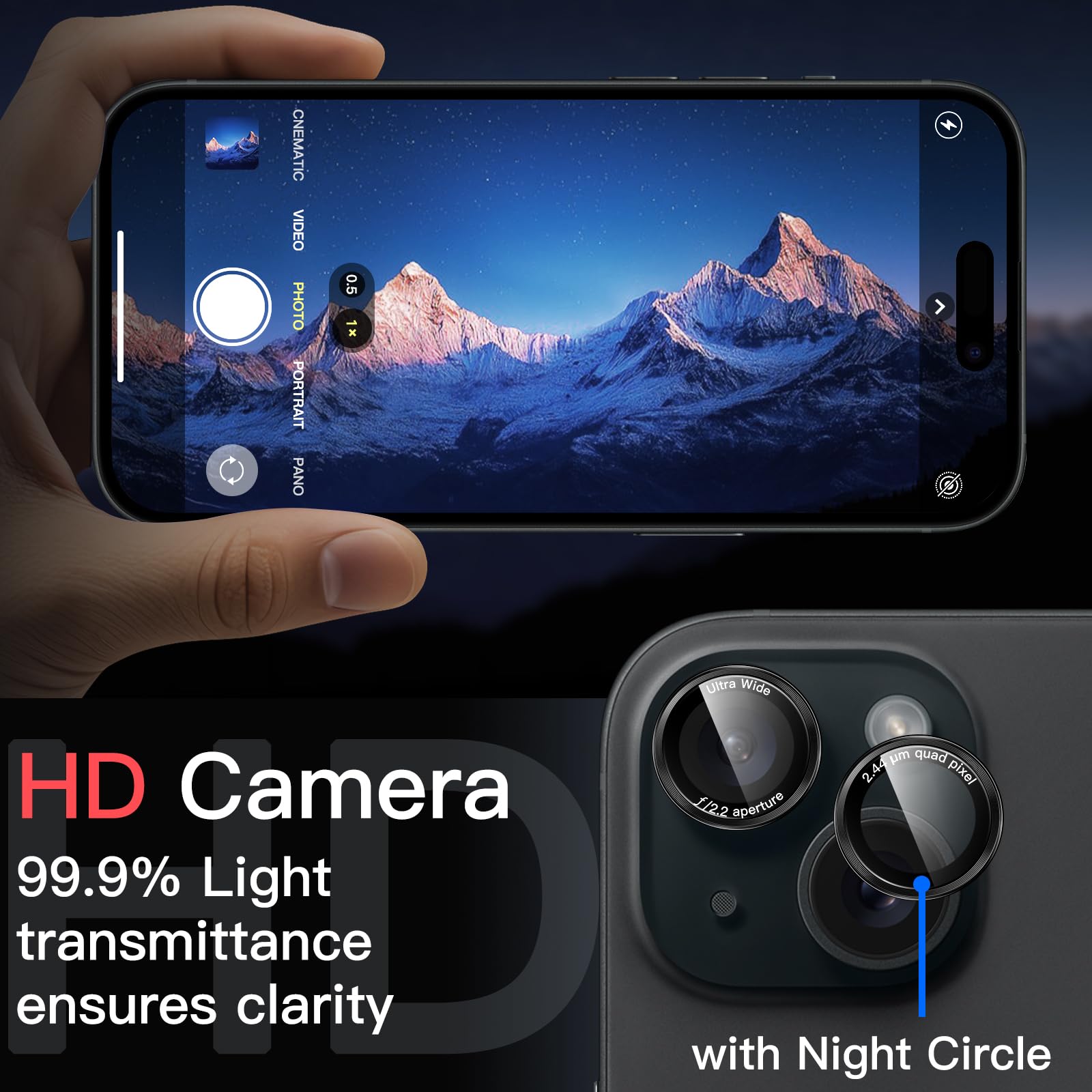 • [High Definition] The glass lens protector with 99.99% light transmittance ensures the original quality of photos and videos. Moreover, the oleophobic coating effectively keeps fingerprints, sweat and oil from gathering