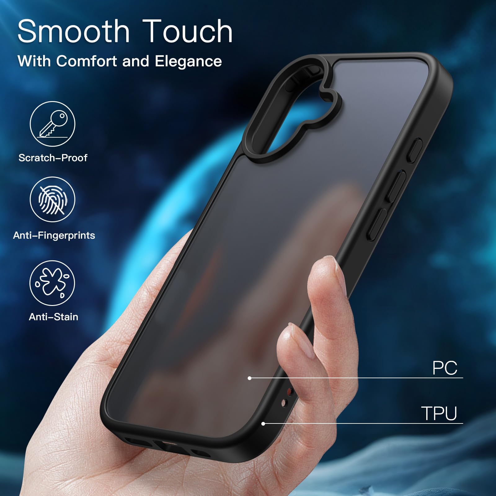 [Translucent Design] The hybrid case with flexible TPU frame and hard PC matte back offers you a smooth touch feeling. No annoying fingerprints and oil smudges. Meanwhile, the phone’s delicate logo can be shown off