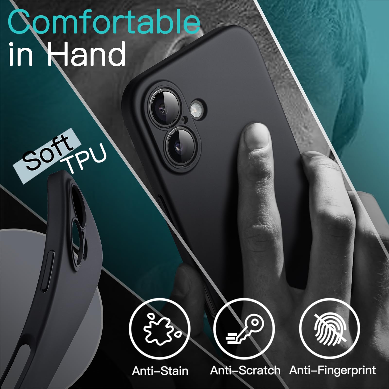 JETech Case for iPhone 16 6.1-Inch, Camera Lens Full Protection, Soft TPU Protective Phone Cover with Matte Finish, Shockproof