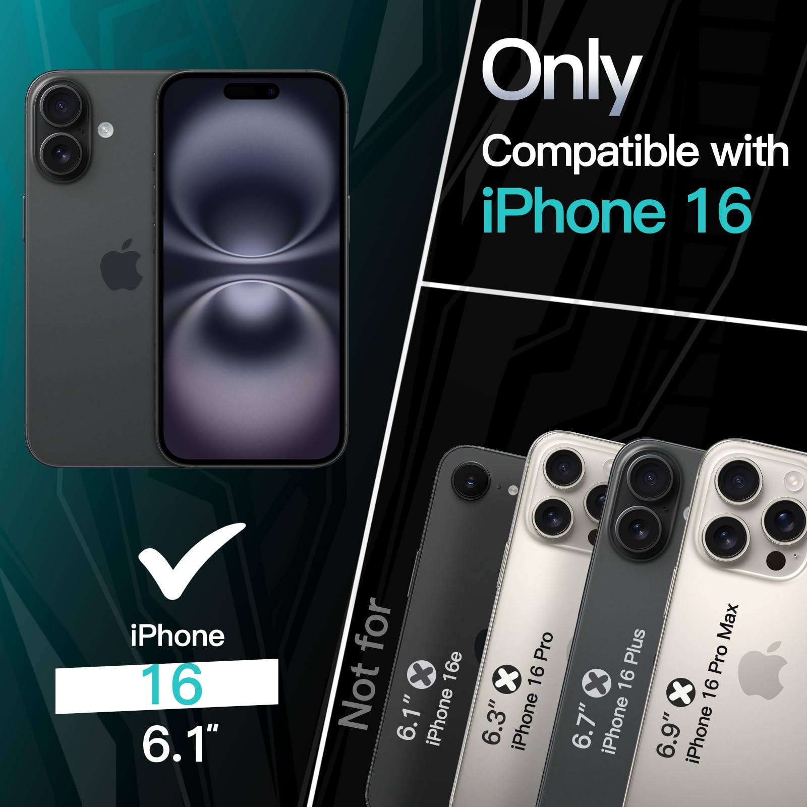 [Compatibility] Exclusively designed for iPhone 16 6.1-inch. NOTE: Not for iPhone 16 Plus / 16 Pro / 16 Pro Max. This case does not interfere with wireless charging at all