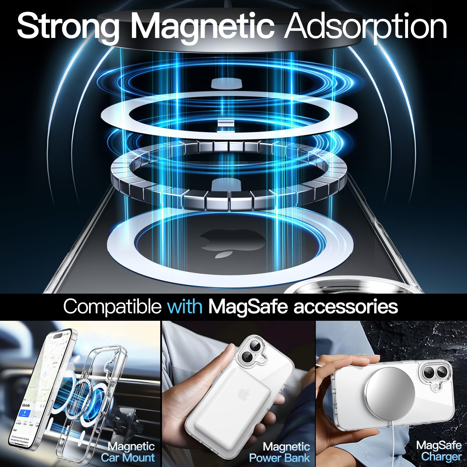 [Compatibility] Exclusively designed for iPhone 16 Plus 6.7-inch. NOTE: Not for iPhone 16 / 16 Pro / 16 Pro Max. With built-in 38 pieces of magnets, the clear case is compatible with MagSafe accessories