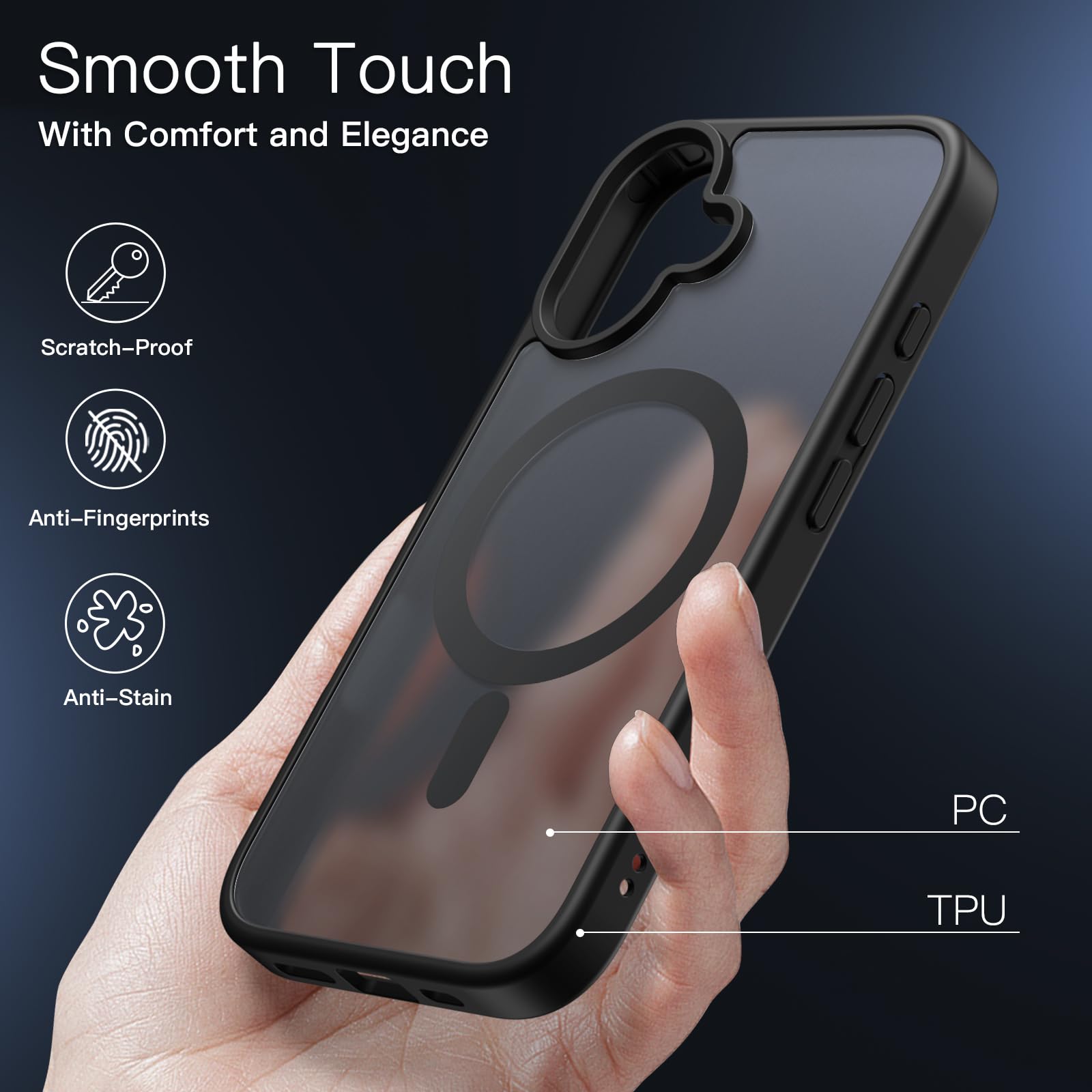 [Translucent Matte Back] The case back is coated with frosted material, comfortable in hand and resisting annoying smudges like fingerprints, oil residue. Also you can still admire the delicate logo of your device