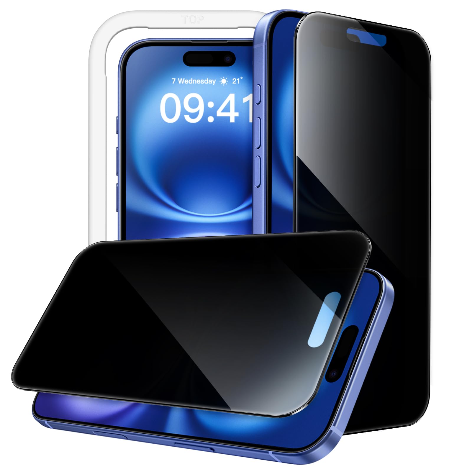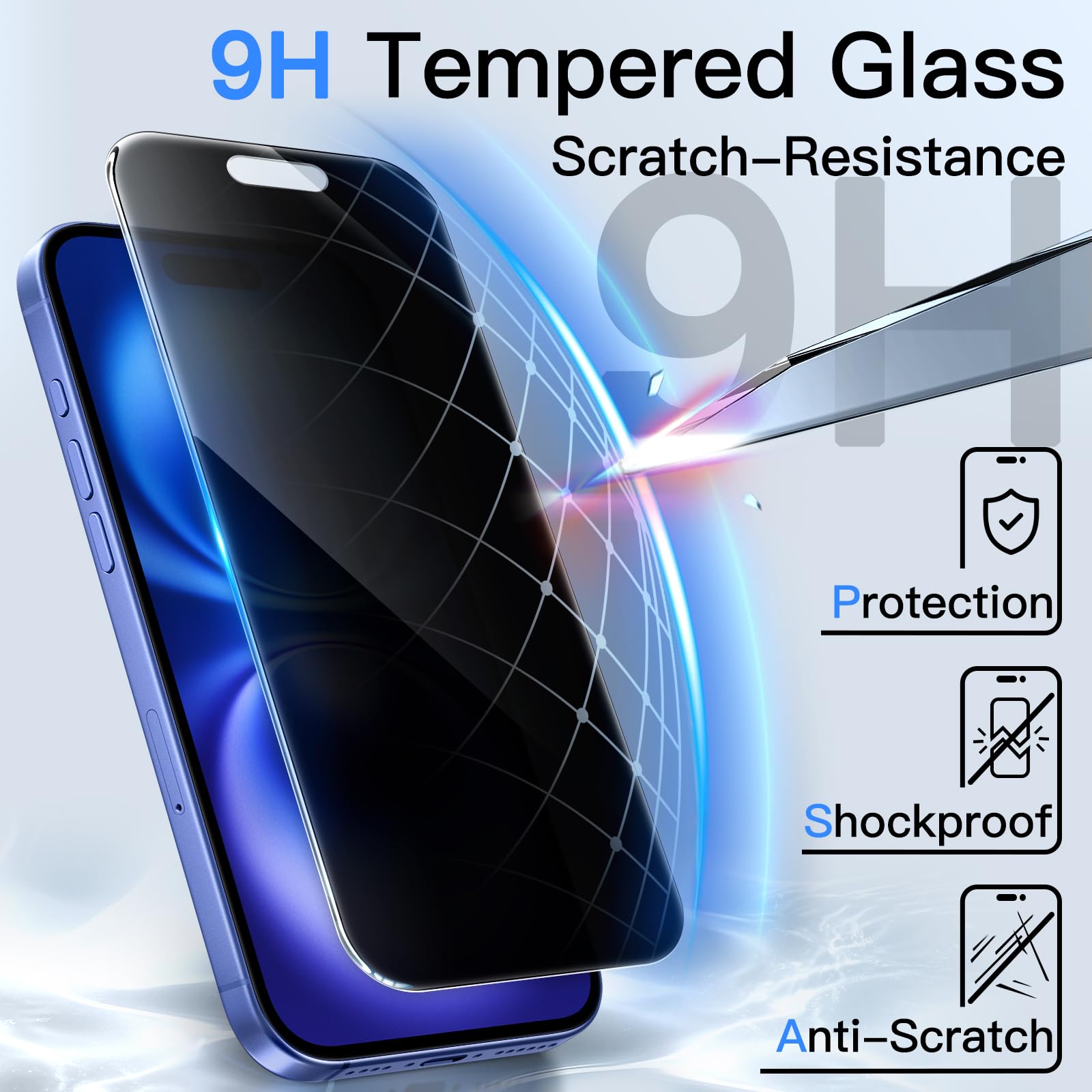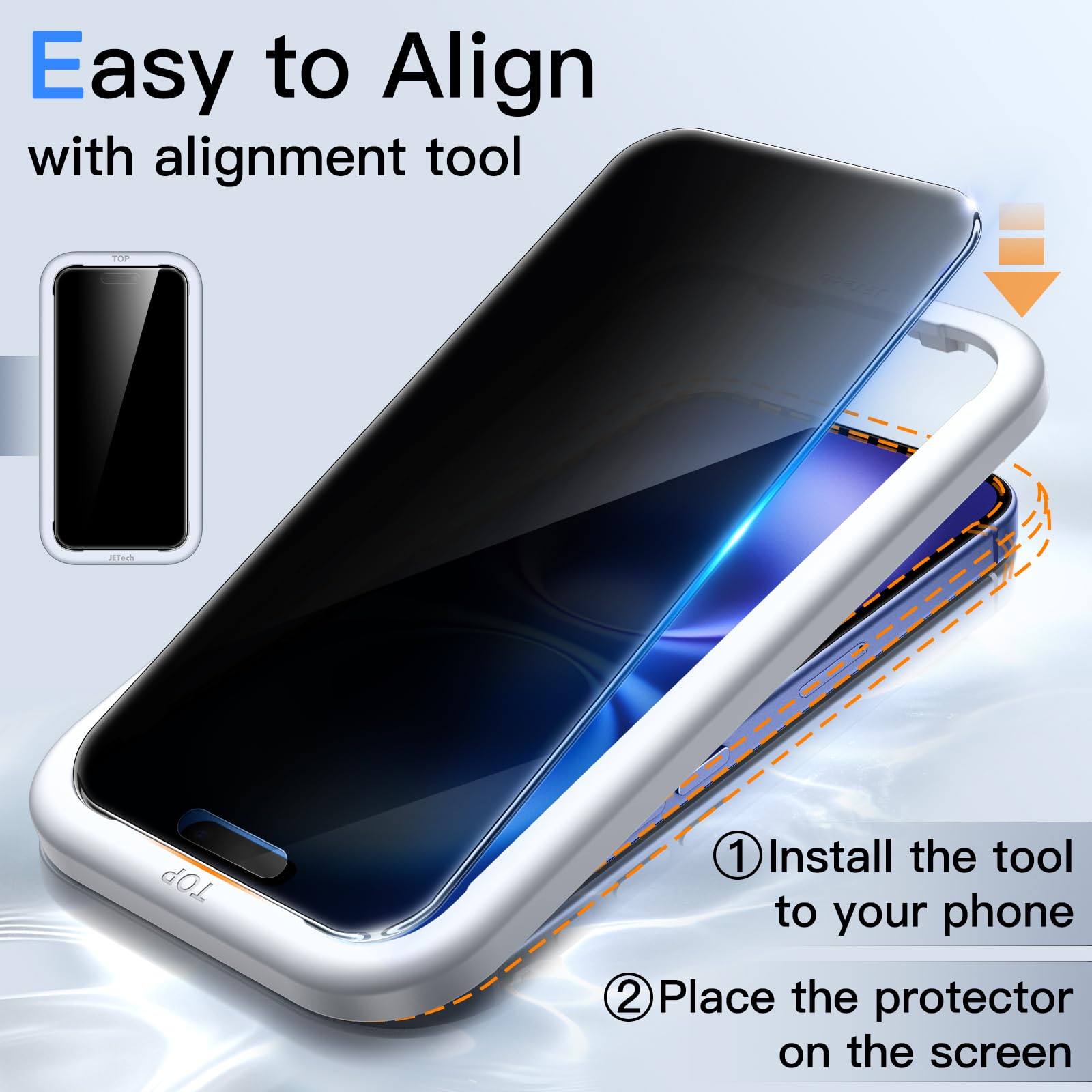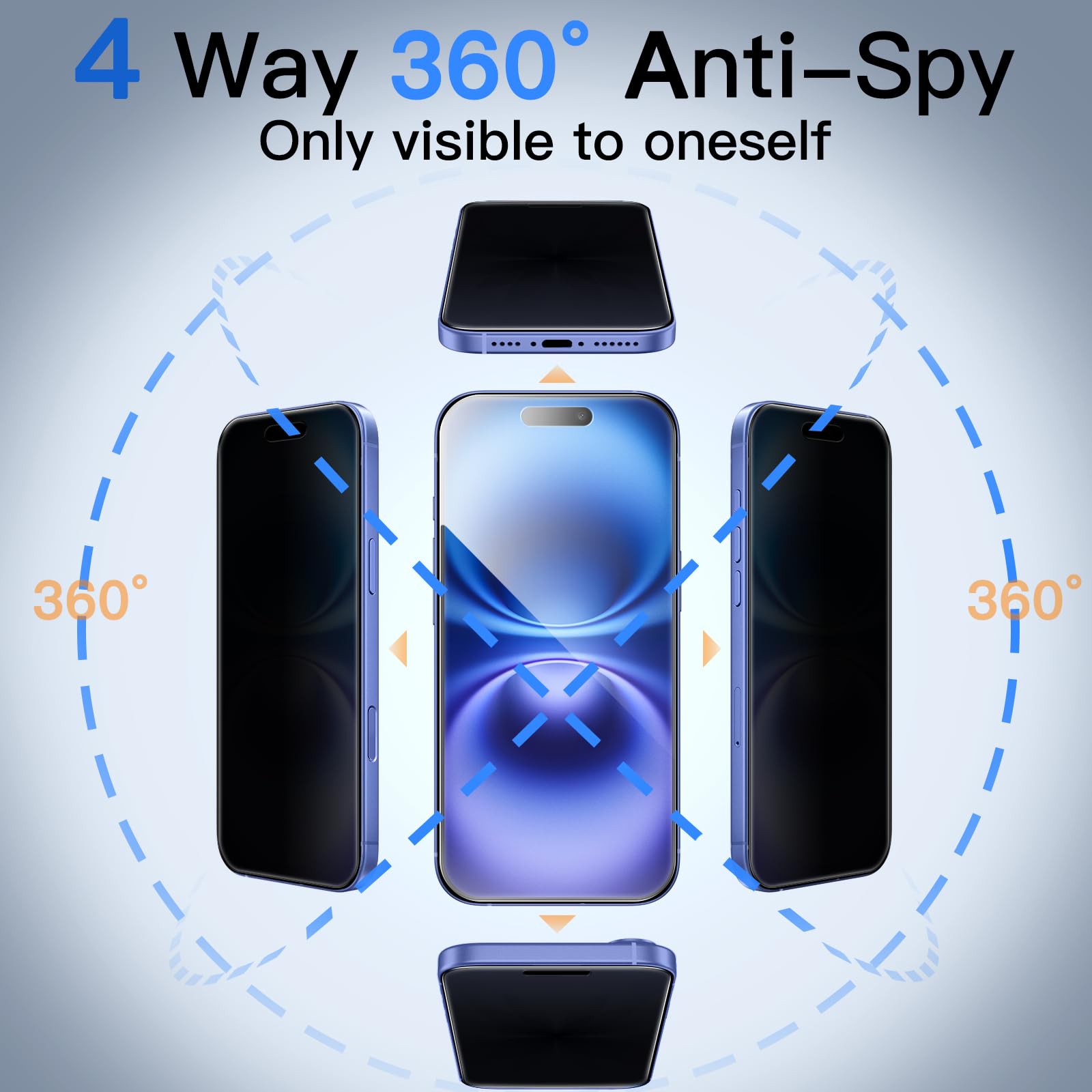 JETech 360 Degree Privacy Screen Protector for iPhone 16 Plus 6.7-Inch, 4-Way Anti-Spy Tempered Glass Film with Easy Installation Tool, 2-Pack