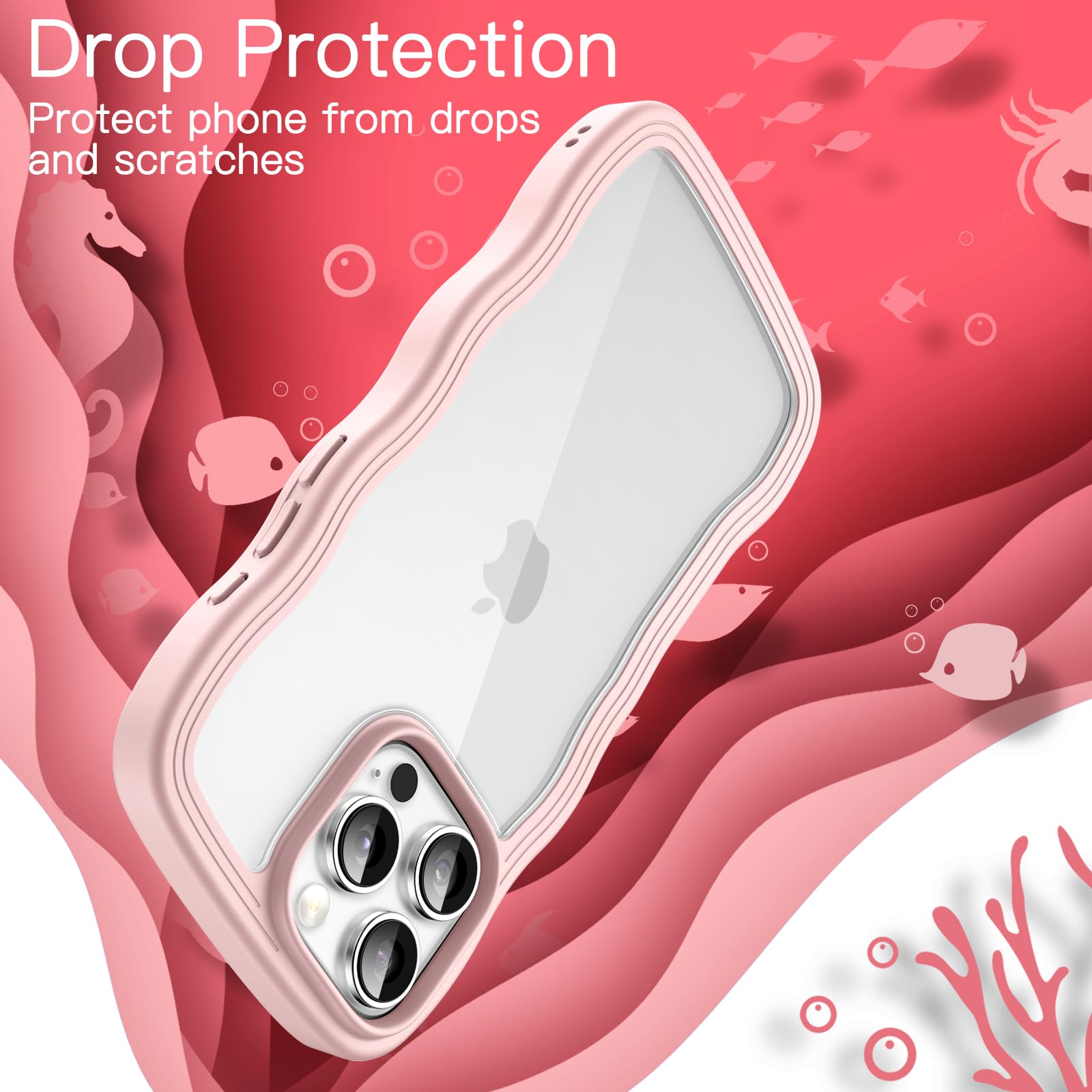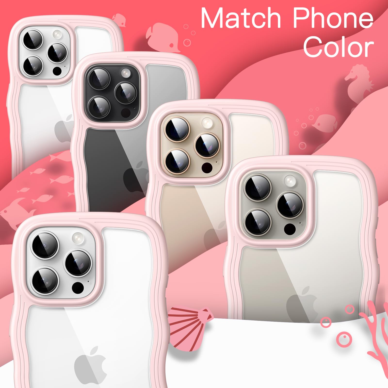 JETech Wavy Case for iPhone 16 Pro 6.3-Inch, Cute Wave Frame Curly Shape Shockproof Phone Cover for Women and Girls, Clear Hard PC Back
