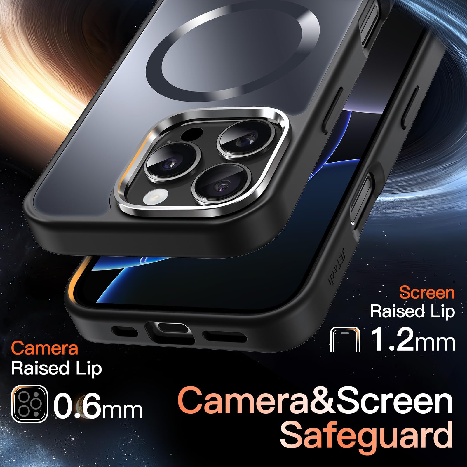 [Durable & Safeguard Design] The back camera frame secured durability thanks to its metal structure. And raised edges effectively protect the screen and camera against surface scratches