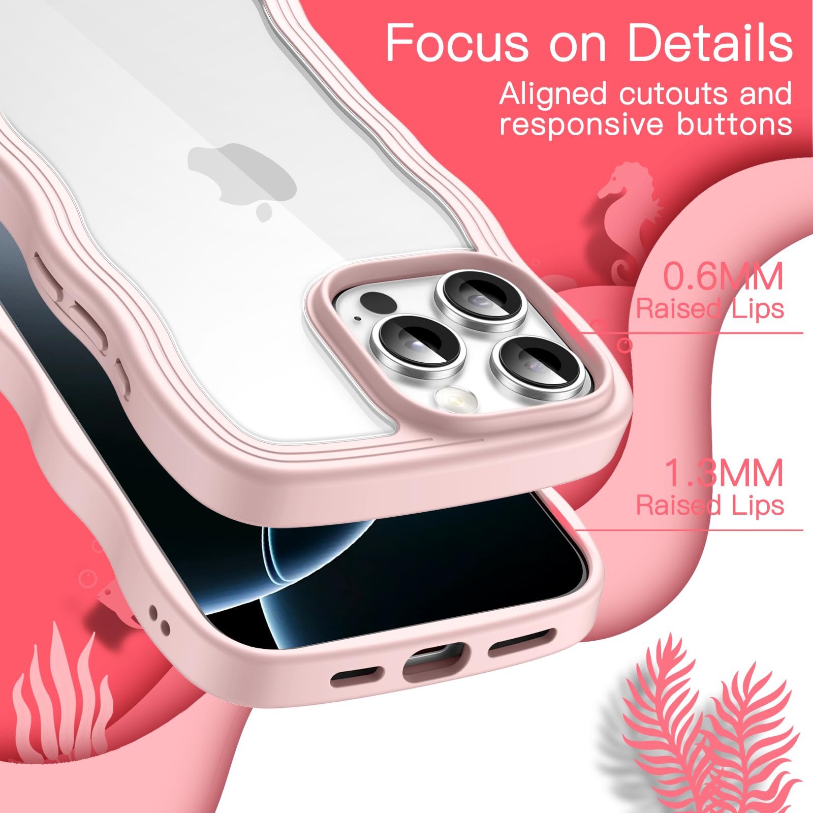JETech Wavy Case for iPhone 16 Pro Max 6.9-Inch, Cute Wave Frame Curly Shape Shockproof Phone Cover for Women and Girls, Clear Hard PC Back