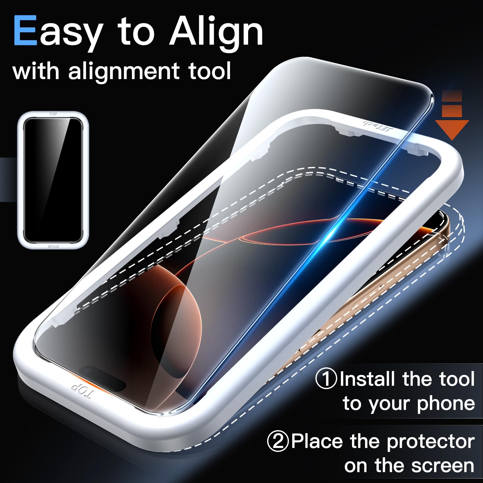 [Super Easy Installation] Equipped with easy installation tool. Allows you to align perfectly and install the screen protector quickly without leaving any air bubbles, even for beginners