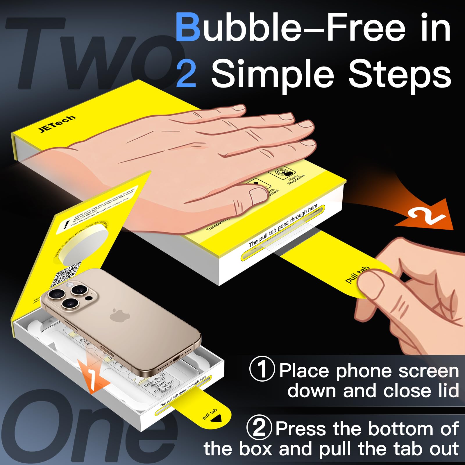 [Super Easy Installation] Simply snap your phone upside down onto the alignment tool, pull out the pull-tab, and the screen protector automatically aligns itself for a quick, bubble-free adhesion