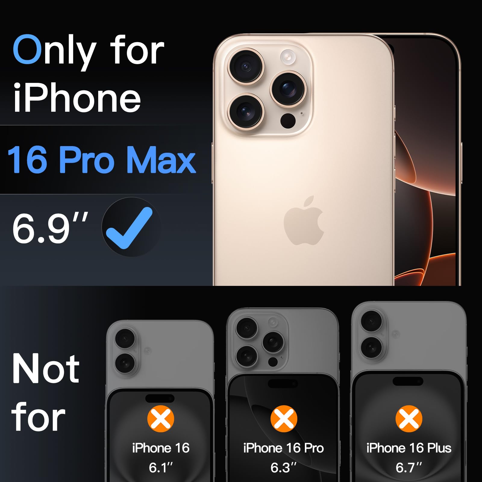 [Compatibility] Designed for iPhone 16 Pro Max 6.9-inch for great protection. NOTE: Not for iPhone 16 / 16 Plus / 16 Pro. Please kindly check your device model before purchasing. Designed with thoughtful 2.5D curved edges, compatible with most phone cases
