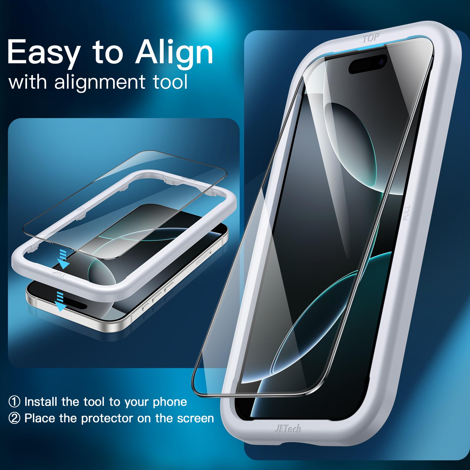 4 reviews for JETech Full Coverage Screen Protector for iPhone 16 Pro 6.3-Inch, Black Edge Tempered Glass Film with Easy Installation Tool, Case-Friendly, HD Clear, 3-Pack