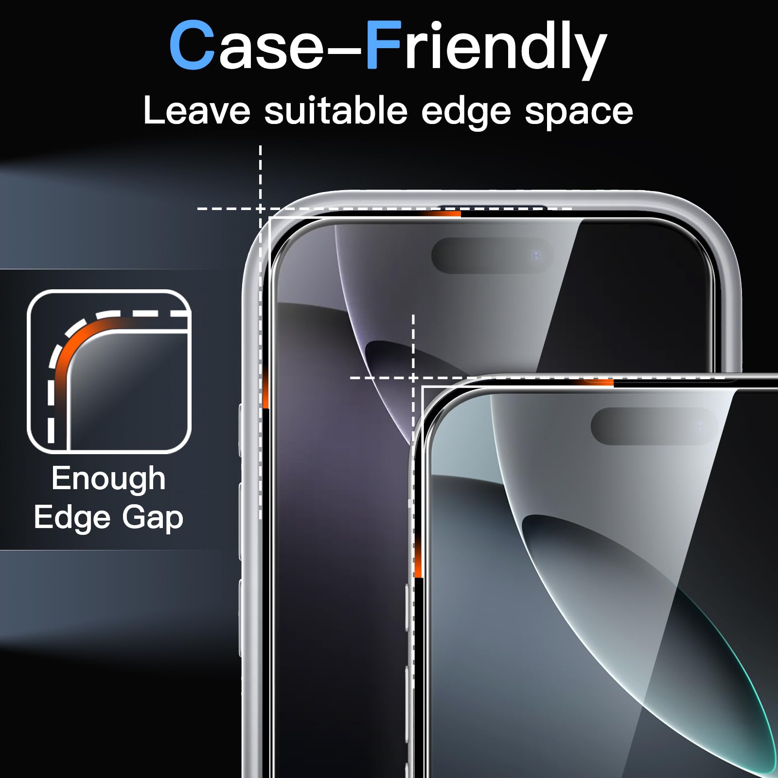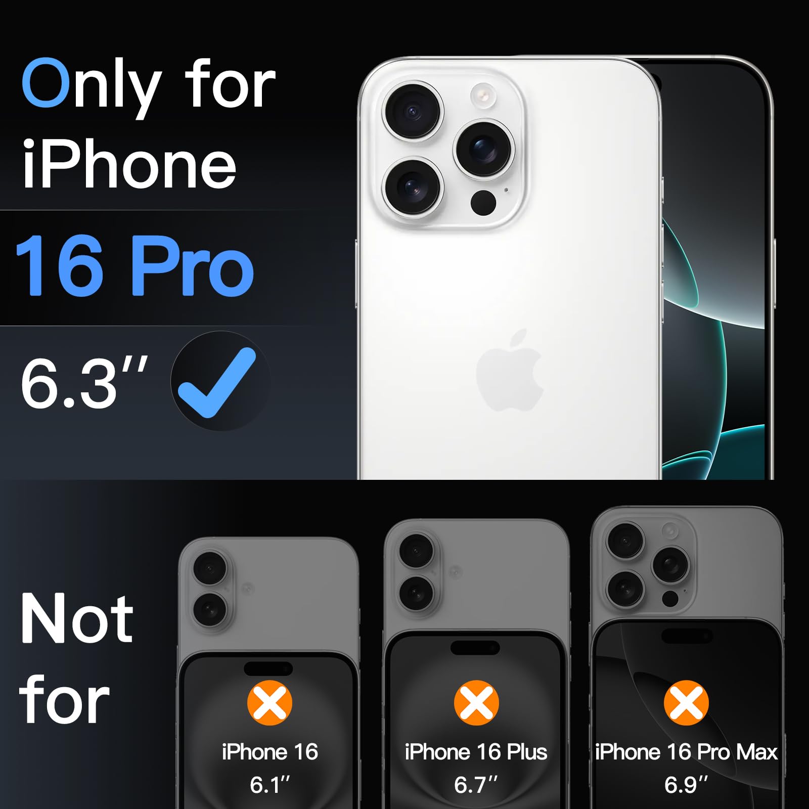 [Precise Fit] Designed for iPhone 16 Pro 6.3-inch for great protection. NOTE: Not for iPhone 16 / 16e / 16 Plus / 16 Pro Max. 2.5D curved edges design, compatible with most cases