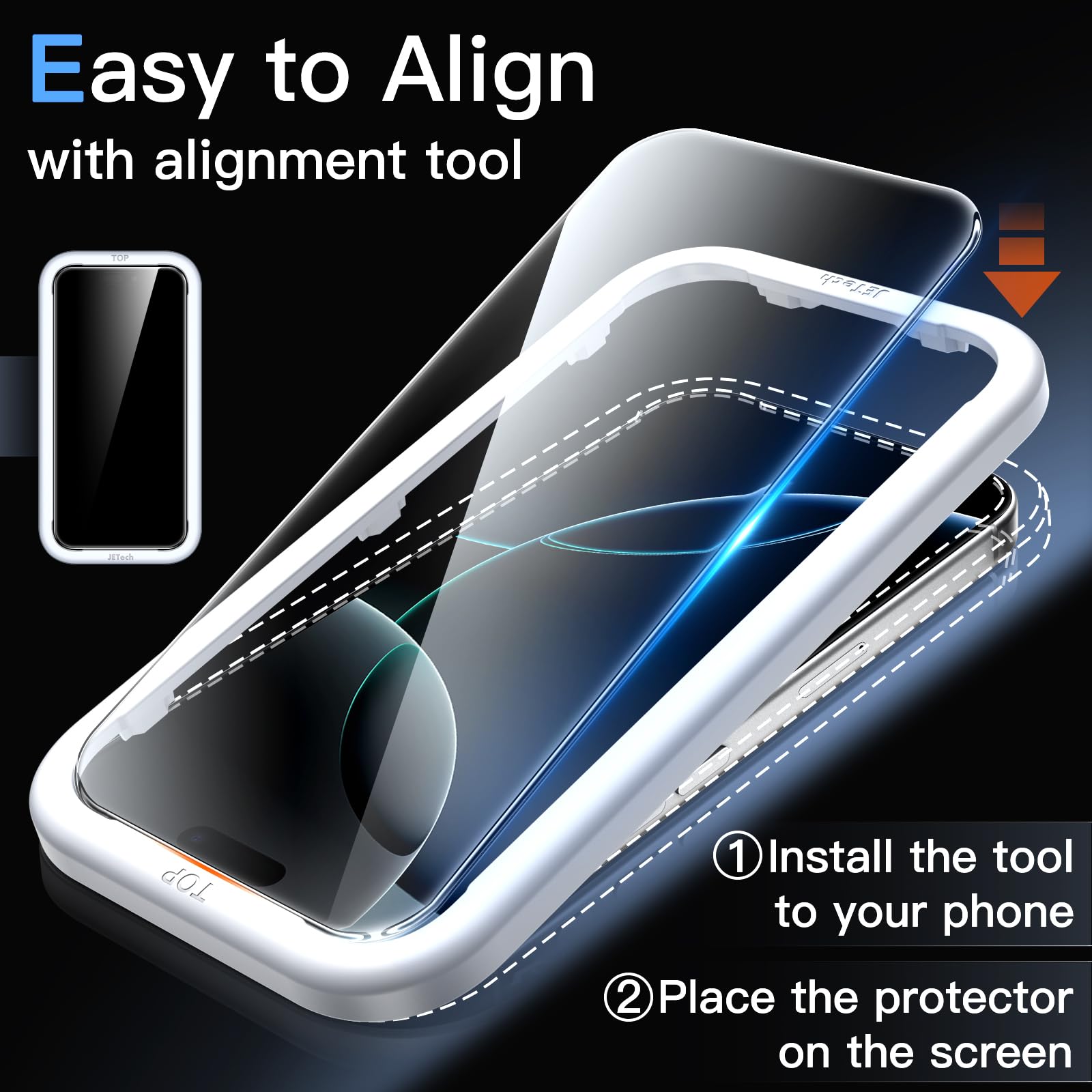 JETech Shatterproof Screen Protector for iPhone 16 Pro 6.3-Inch, 9H Tempered Glass Military Grade Film with Easy Installation Tool, Case-Friendly, HD Clear, 3-Pack