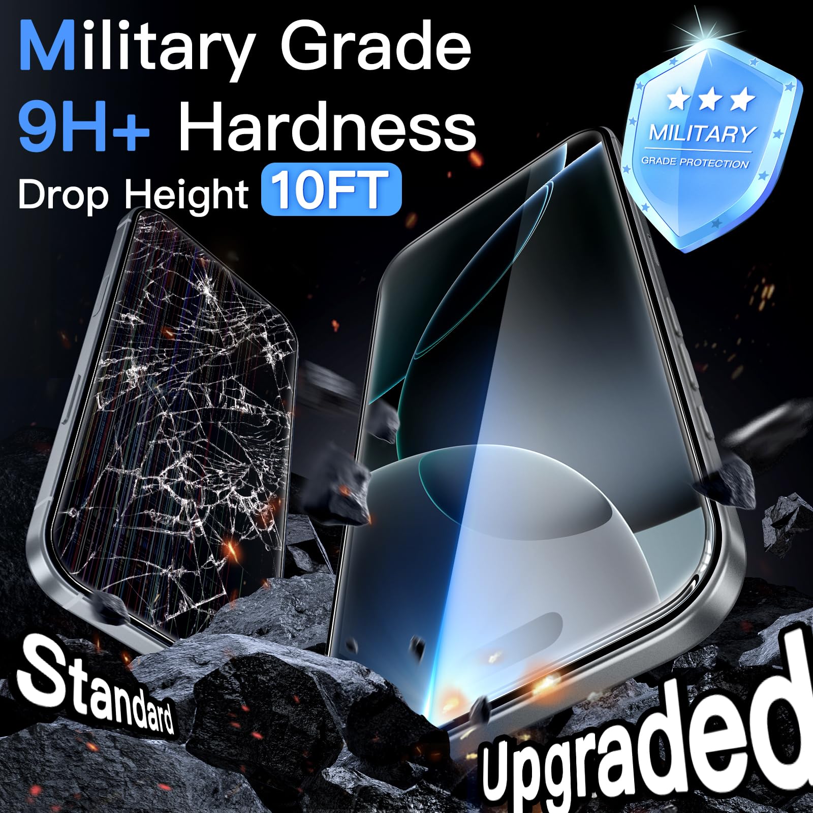 [Military Grade Drop Protection] 9H reinforced glass, more than twice as strong as standard protective film. The reinforced glass edge can effectively protect the edge of the protective film from being damaged or scratched. Military-grade protection, guarding your screen with all-round security