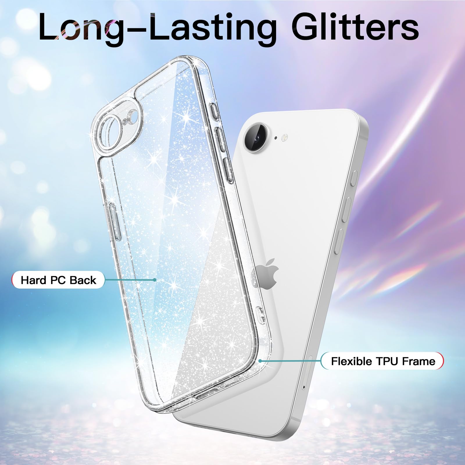 [Long Lasting Glitter] Designed for iPhone 16e 6.1-inch 2025 for women and girls. NOTE: Not for iPhone 16. The embedded eye-catching glitters will never flake off and stay bling, making your phone more attractive and fashionable