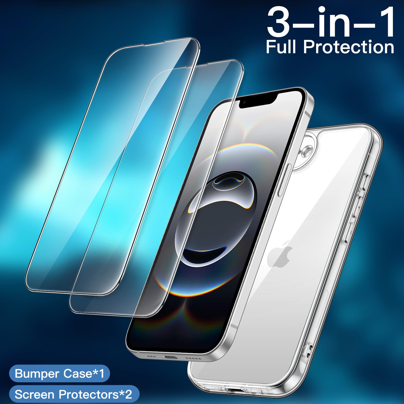 [3-in-1 High Protection] Exclusively fit iPhone 16e 6.1-inch 2025. NOTE: Not for iPhone 16. You will receive a protective clear case and 2 pack screen protectors, bringing comprehensive protection to your device. Support wireless charging