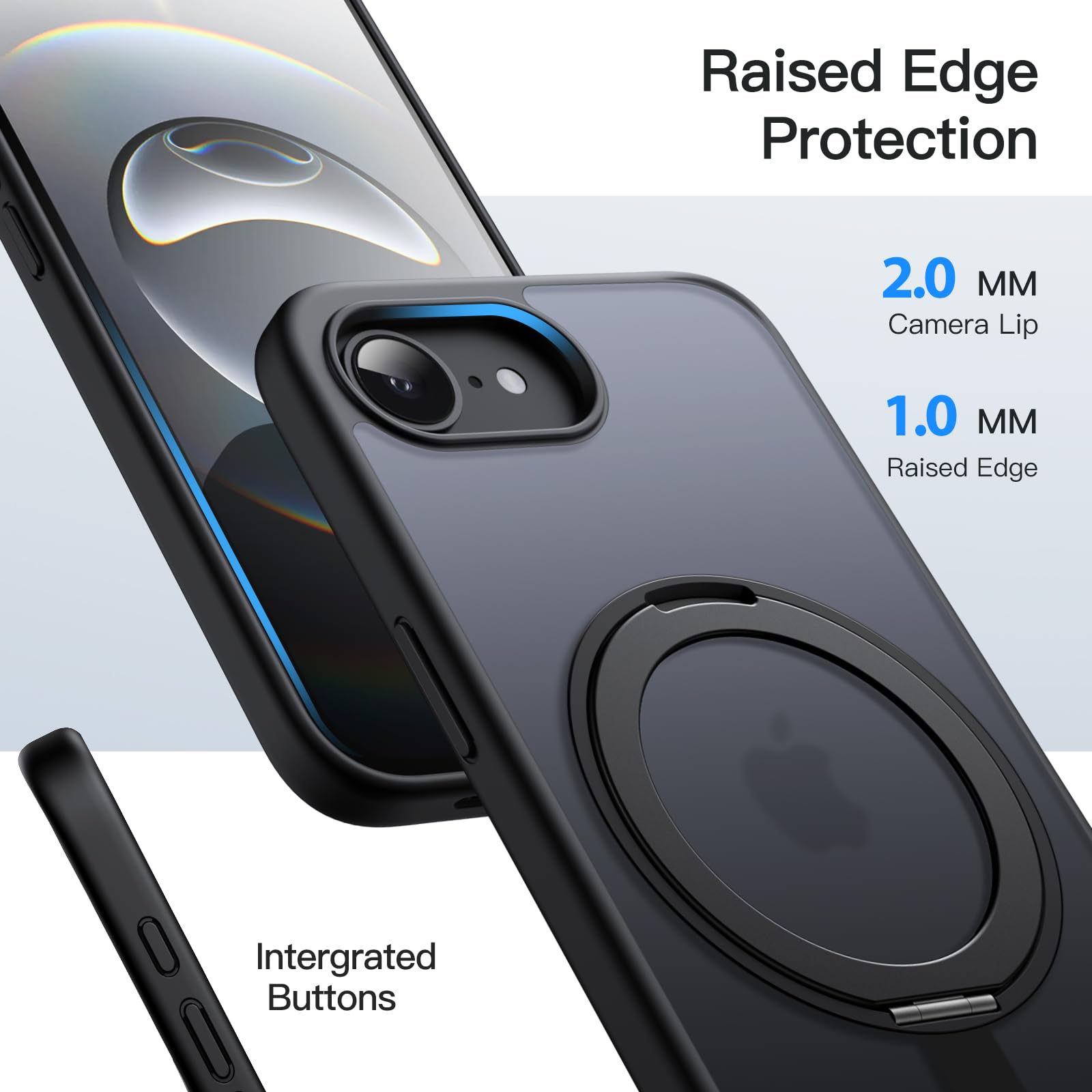 [Lasting Durability] The rotatable ring stand undergoes over 3000 open/close tests throughout the manufacturing process to provide you with quality assurance. Meanwhile, the raised edges effectively protect the screen and camera, perfectly protect your phone from daily drops and bumps