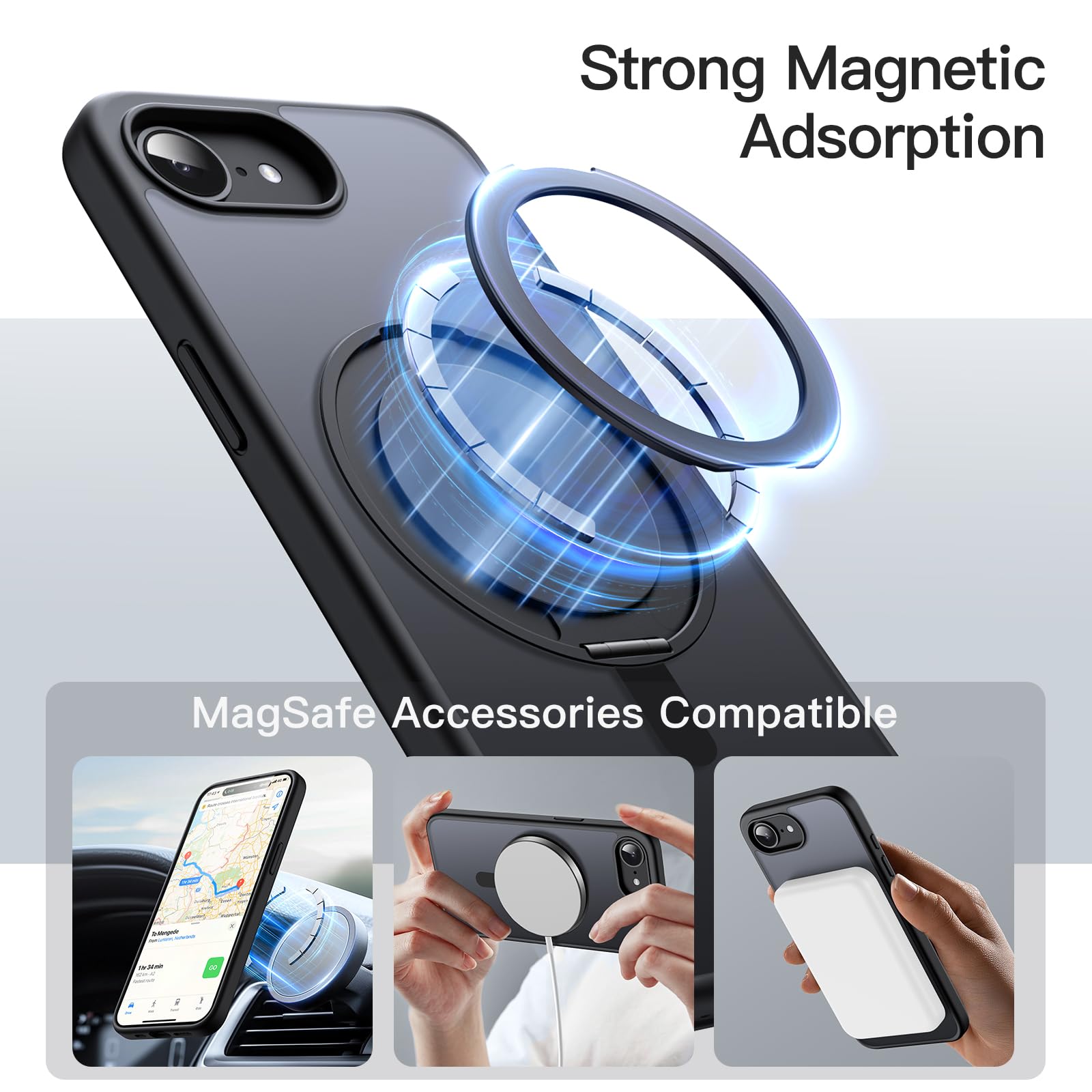 JETech 360 Degree Rotatable Ring Case for iPhone 16e 6.1-Inch 2025 Compatible with MagSafe, Slim Shockproof Phone Cover with Stand & Ring Holder