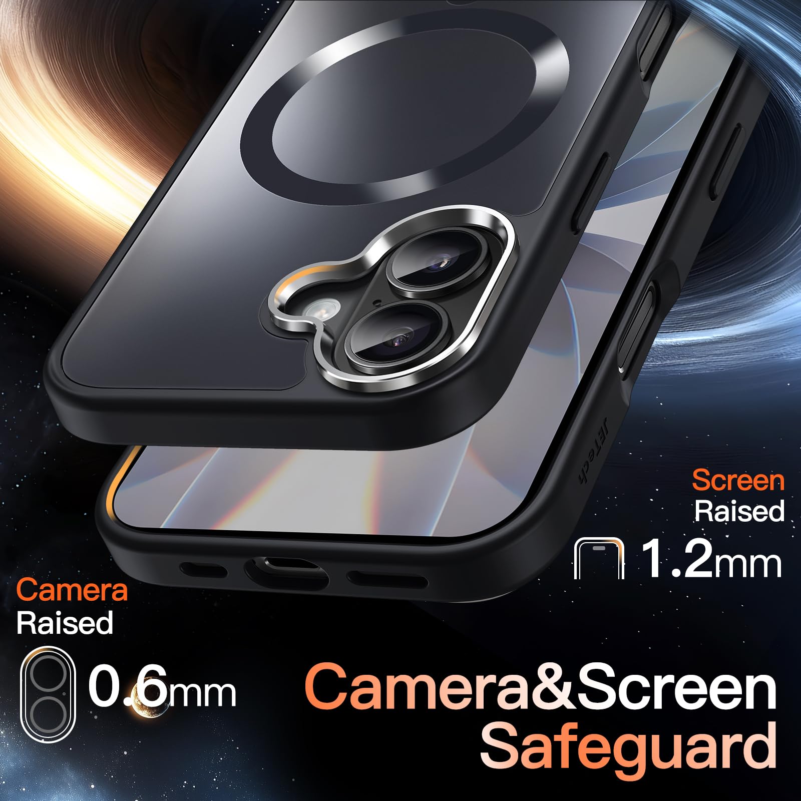 [Durable & Safeguard Design] The back camera frame secured durability thanks to its metal structure. And raised edges effectively protect the screen and camera against surface scratches