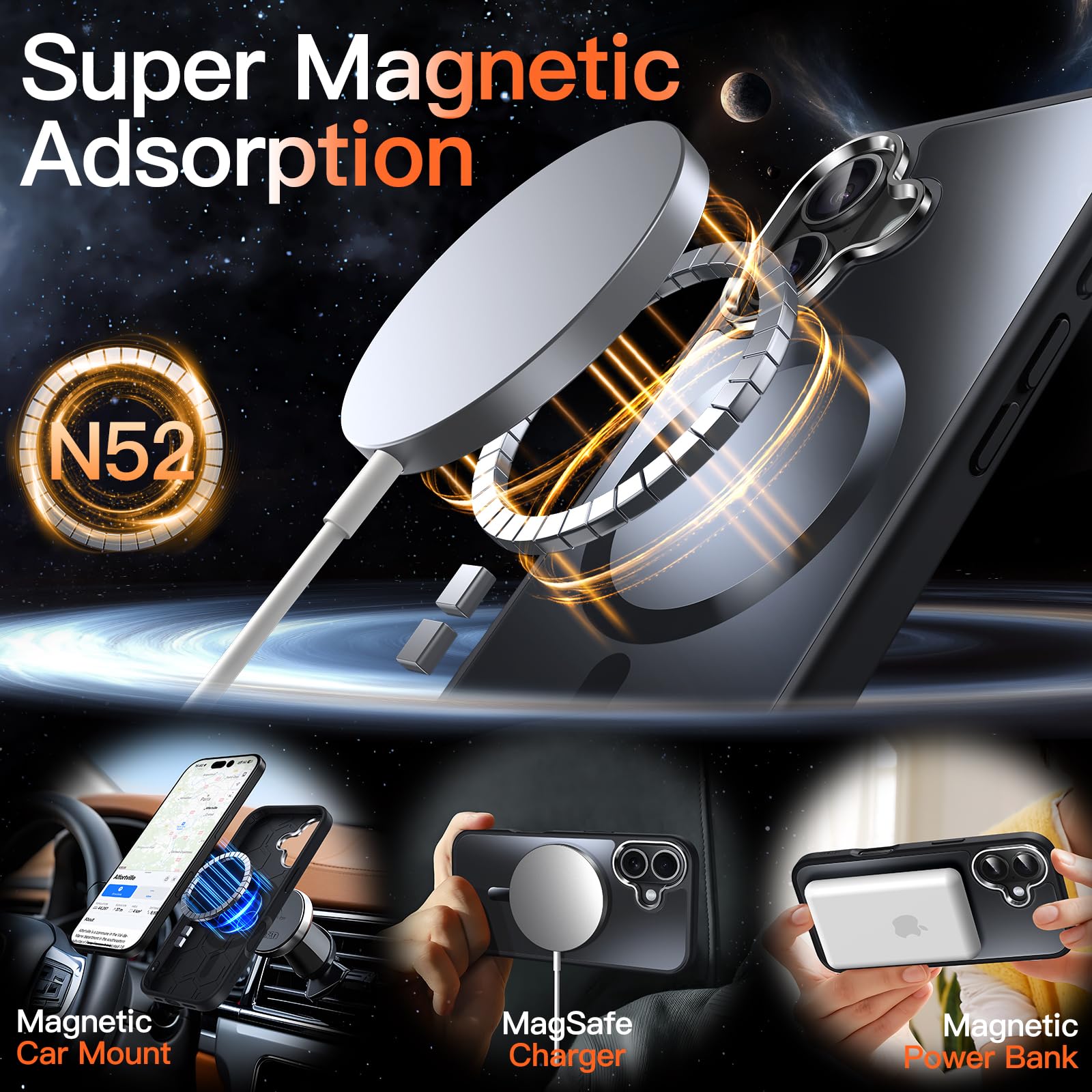 [Super Magnetic Adsorption] Strongly attach to the charger magnetically. Once snap on, never sliding. Compatible with MagSafe accessories, such as wallet, ring holder and power bank