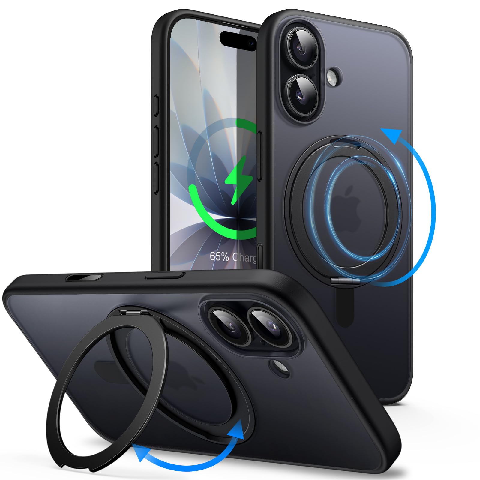 JETech 360 Degree Rotatable Ring Case for iPhone 17 6.3-Inch with Camera Control Button, Compatible with MagSafe, Slim Shockproof Phone Cover with Stand & Ring Holder