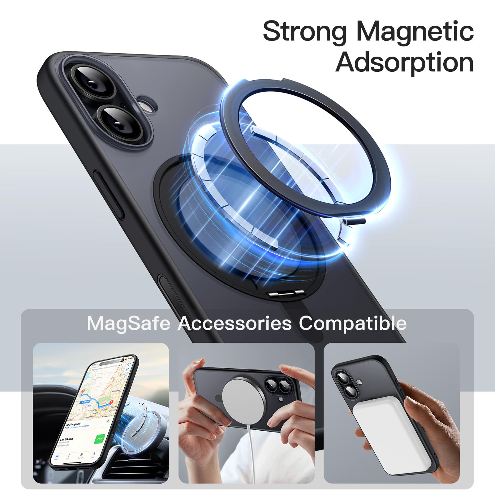 [Super Magnetic Adsorption] Strongly attach to the charger magnetically. Once snap on, never sliding. Compatible with MagSafe accessories, such as wallet, ring holder and power bank. Moreover, we combined the strong magnetic technology with a foldable kickstand, turning it into a hidden magnetic stand that folds back into the groove when not in use