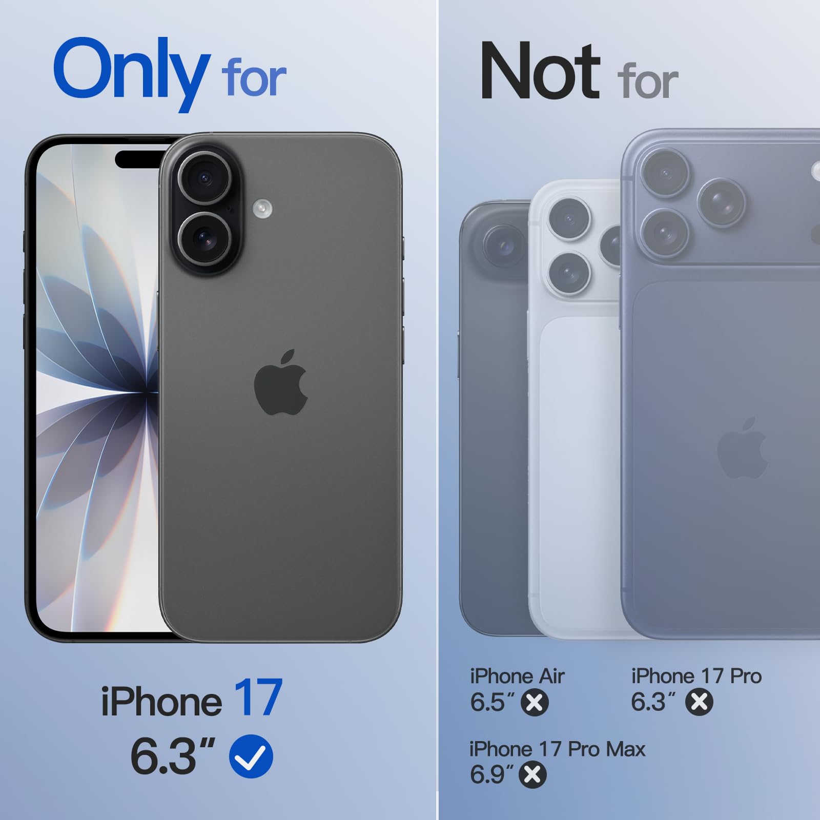 [Perfectly Fit] Designed for iPhone 17 6.3 inch. NOTE: Not for iPhone Air / 17 Pro / 17 Pro Max. The perfectly aligned cutouts allow full access to the camera, speaker, buttons and other ports