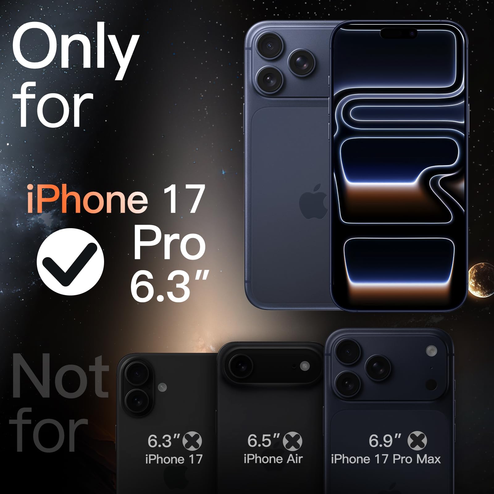 • [Perfectly Fit] Flawlessly designed for iPhone 17 Pro 6.3 inch. NOTE: Not for iPhone 17 / Air / 17 Pro Max. The perfectly aligned cutouts allow full access to the camera, speaker, buttons and other ports. Lightweight design adds no bulk to your phone
