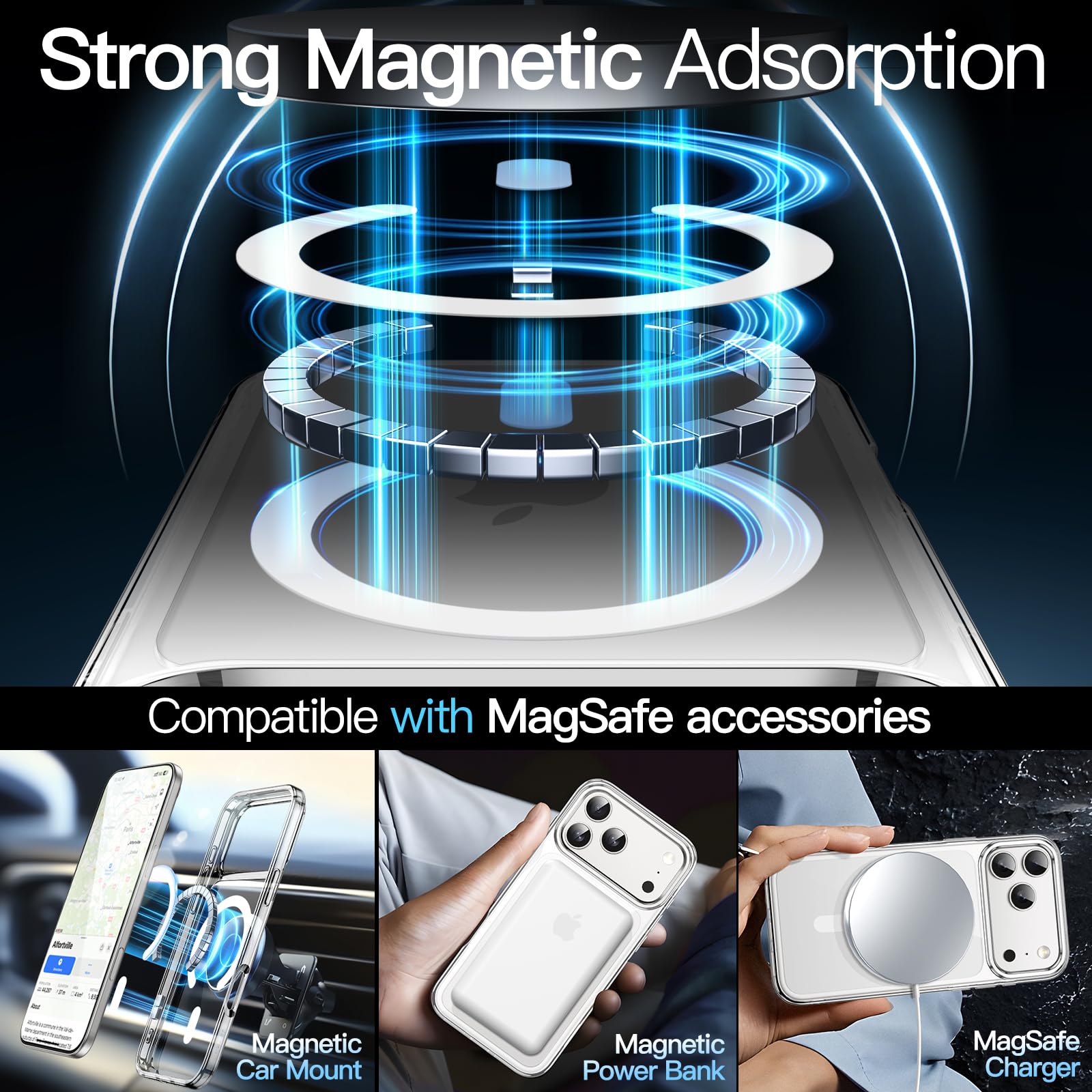 [Compatibility] Exclusively designed for iPhone 17 Pro 6.3 inch. NOTE: Not for iPhone 17 / Air / 17 Pro Max. With built-in 38 pieces of magnets, the clear case is compatible with MagSafe accessories