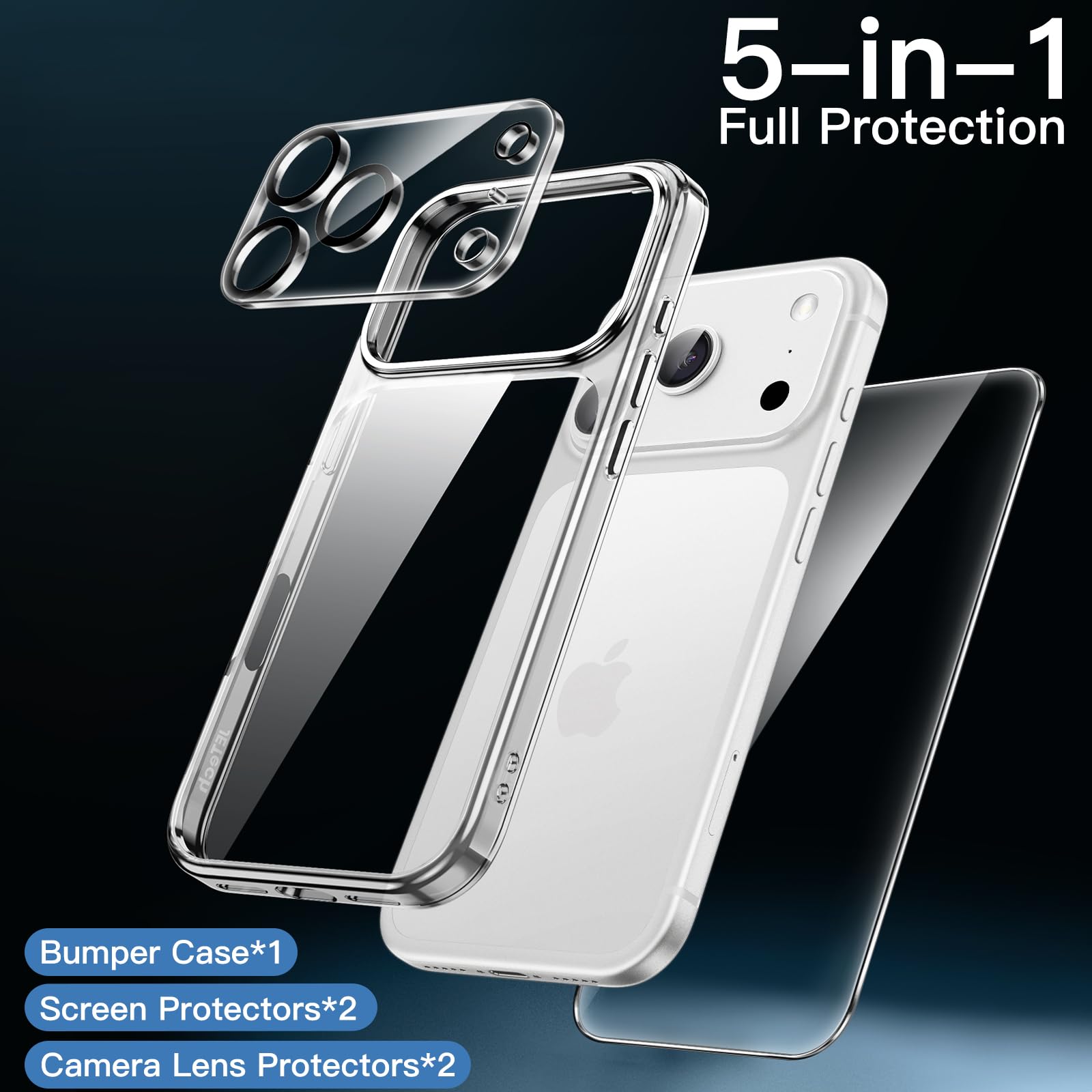 • [5-in-1 Full Protection] There are 2 pack screen protectors with an alignment tool, 2 pack camera lens protectors and a bumper case, providing all-around protection for your phone. Easy installation with included accessory kits