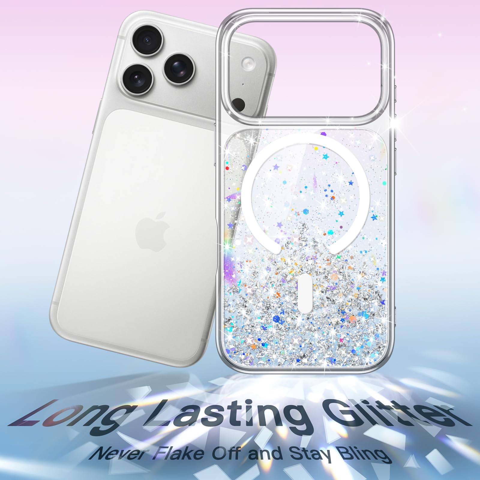 [Long Lasting Glitter] NOTE: The glitter cannot flow. The embedded eye-catching silver foil will never flake off and stay bling. The flat and comfortable back shiny design can show special twinkle effects from different angles, making your phone more attractive and trendy