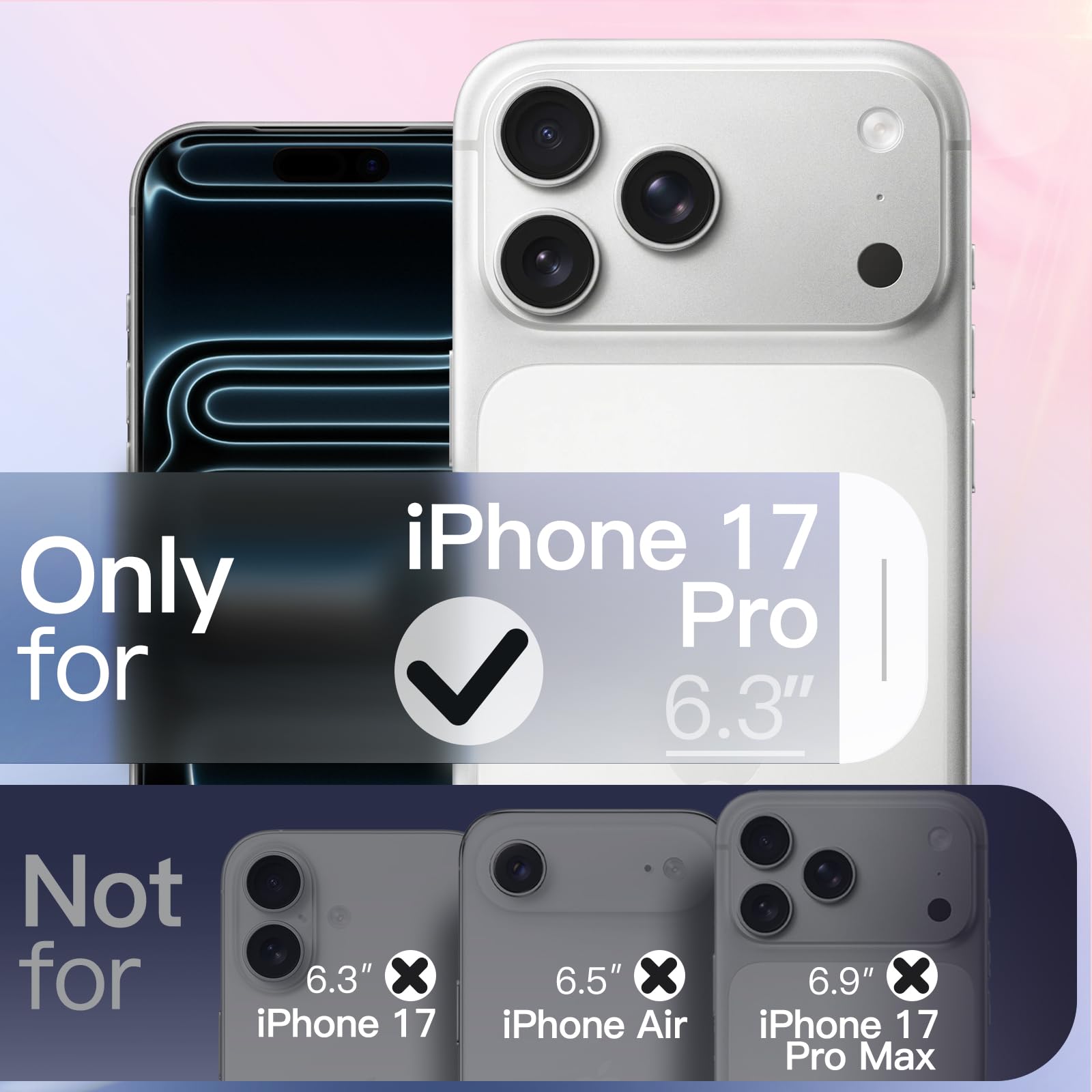 [Perfectly Fit] Designed for iPhone 17 Pro 6.3 inch for women and girls. NOTE: Not for iPhone 17 / 17 Air / 17 Pro Max. The perfectly aligned cutouts allow full access to the camera, speaker, buttons and other ports