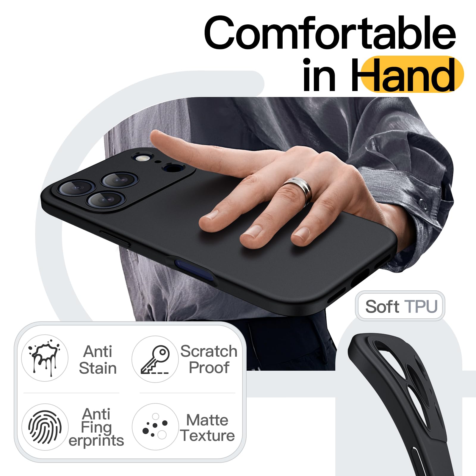 • [Matte Finish] Perfectly resist annoying fingerprints and oil stains thanks to the matte back of the case, offering a secure and comfortable grip at the same time