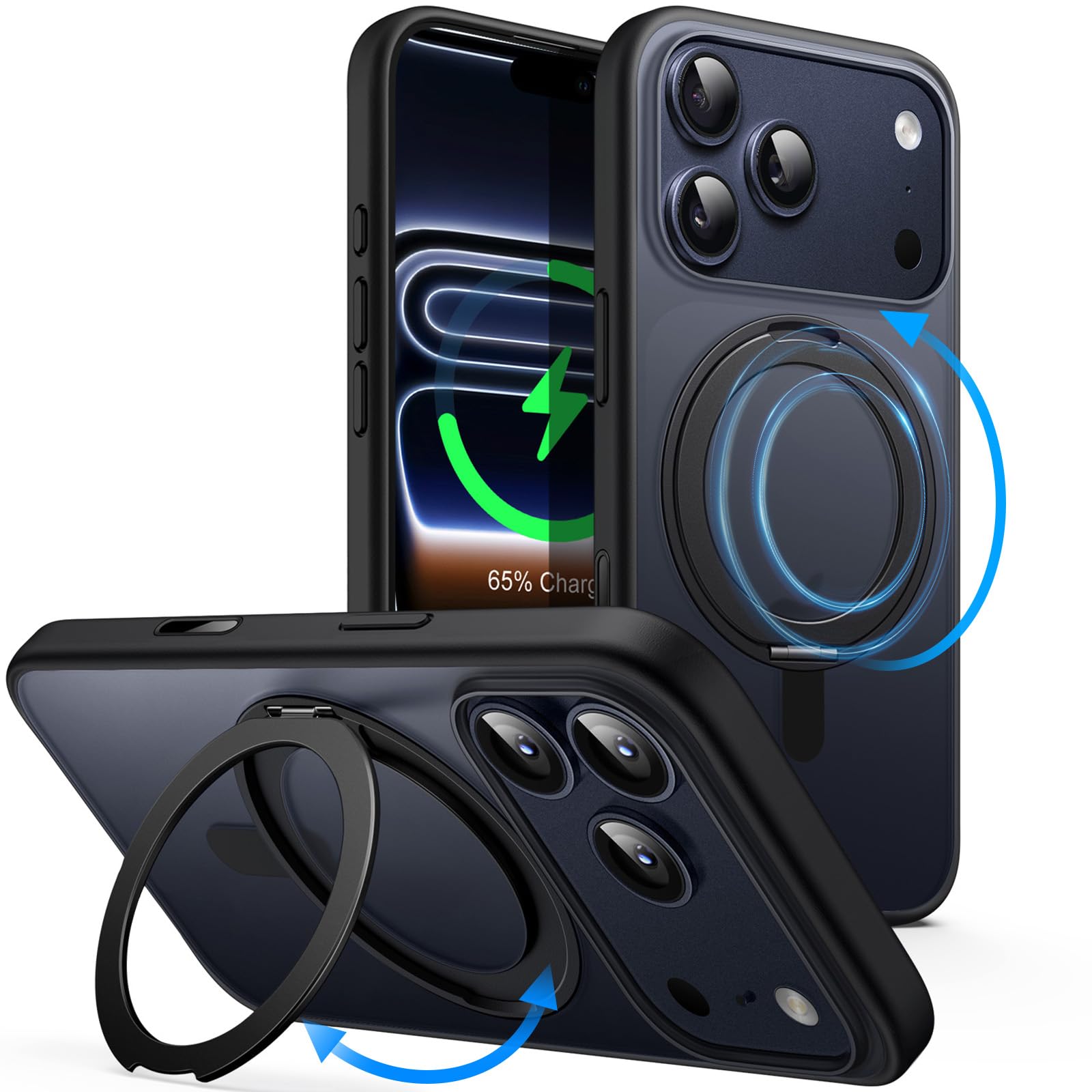 JETech 360 Degree Rotatable Ring Case for iPhone 17 Pro Max 6.9-Inch with Camera Control Button, Compatible with MagSafe, Slim Shockproof Phone Cover with Stand & Ring Holder